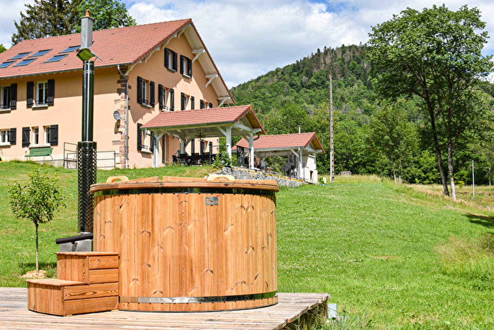 L'hôtr'ement c'est bien sûr la contraction de l'hôte autrement. C'est la philosophie de l'accueil que l'on souhaite à Lodge P2, un endroit où l'on se sent bien, où l'on vient se reposer pour recharger nos réservoirs d'énergie. Ce qui ne veut pas dire ne rien faire mais au contraire bénéficier de la quiétude de l'endroit, de l'harmonie de la bâtisse, du confort de ses équipements. Par exemple, le Sauna ou les bains norvégiens extérieurs, le grand salon convivial avec son coin tisanerie pour des moments de repos ou de partage, la cuisine extérieure avec son barbecue et sa grande table abritée pour savourer de bons repas, le pré autour de l'ancienne ferme pour méditer ou faire du Yoga et bien sûr les multiples sentiers de randonnée et de VTT grâce à la montagne toute proche!