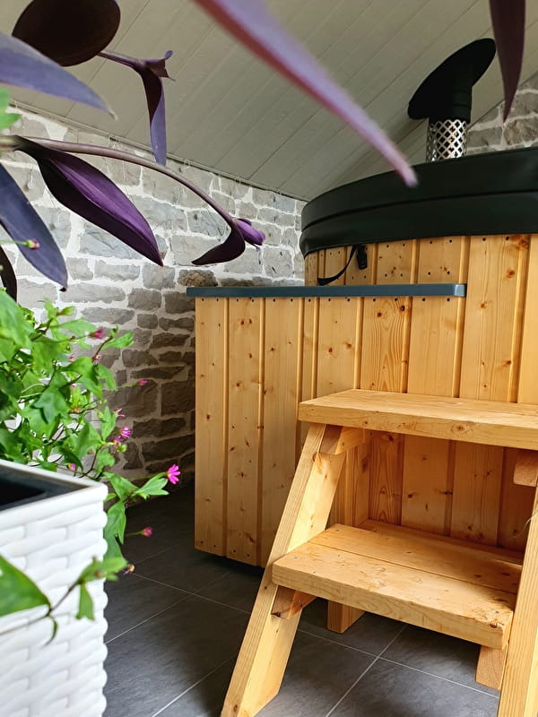 Les hôtes ont accès à des prestations de détente : un jardin fleuri, une terrasse privée et un bain nordique chauffé au bois (en option). Le petit-déjeuner inclus est composé de produits frais, locaux et faits maison. Une table d'hôtes est également disponible sur réservation pour découvrir une cuisine de saison issue du potager ou des fermes voisines.