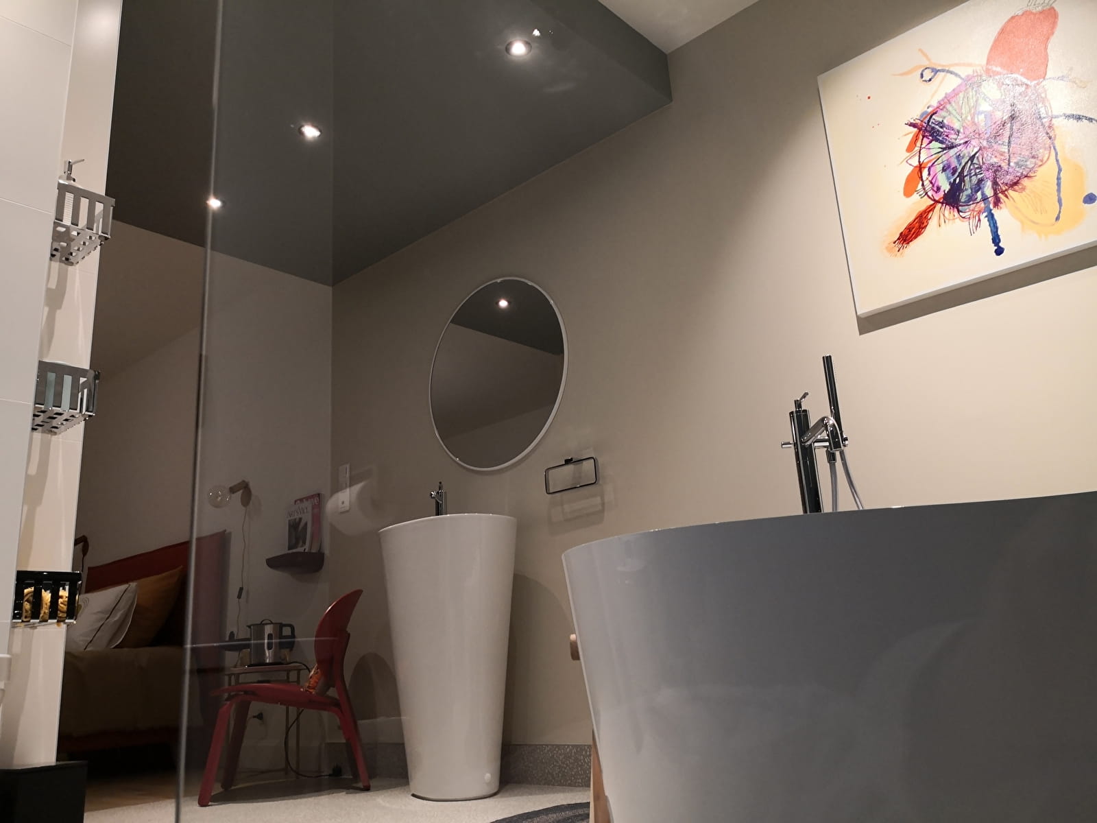 Elle dispose également d'une salle de bain design, fonctionnelle et romantique.