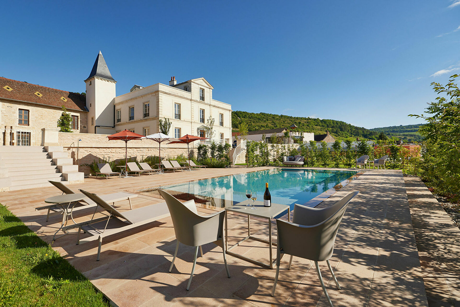 Fenêtres ouvertes sur les vignes alentour, la beauté naturelle des paysages s’exprime depuis le Château de Saint-Aubin qui devient ainsi la destination et le point de départ d’expériences uniques sur la Côte de Beaune en Bourgogne.