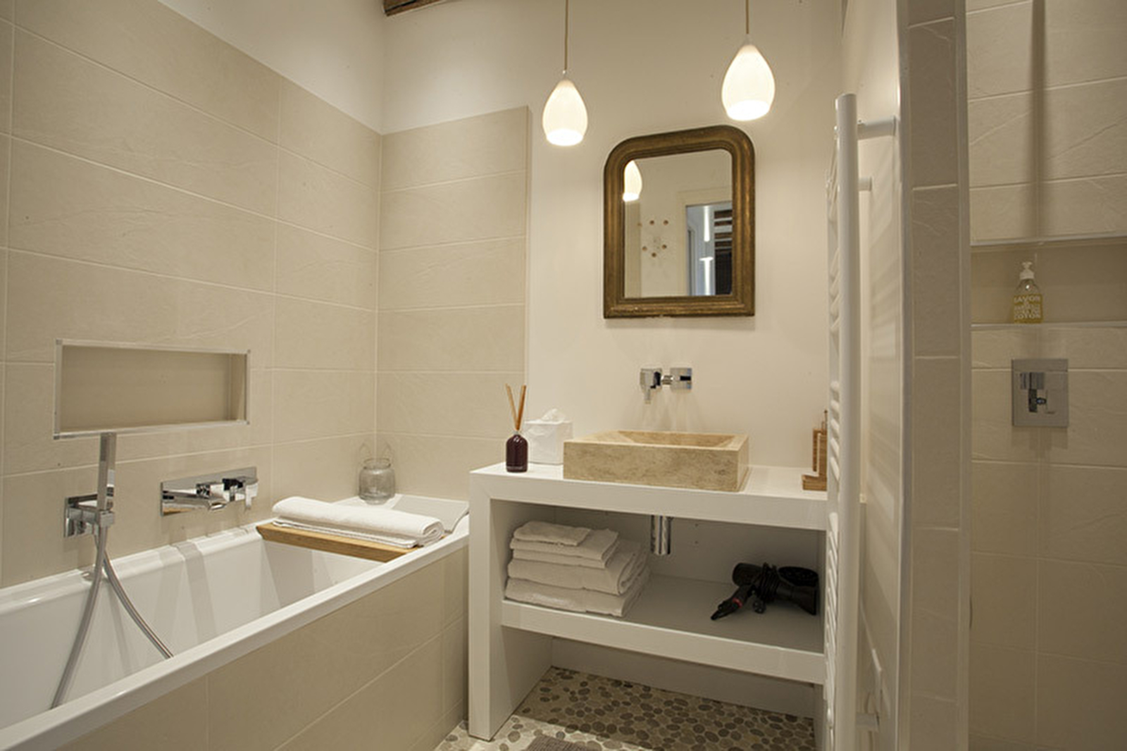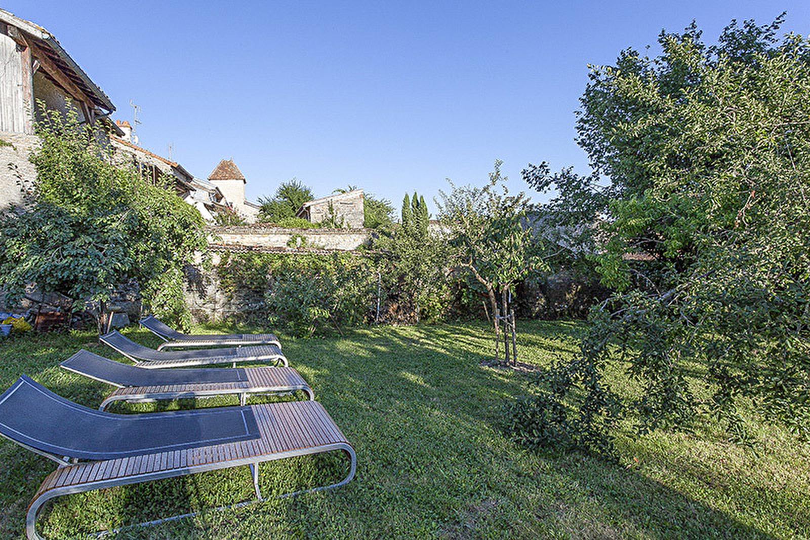 La chambre n°4 est située dans une dépendance, nichée au fond du jardin, et dispose d'une baignoire en plus de la douche à l'italienne, et de sa terrasse privative. Grand salon accessible aux hôtes.
