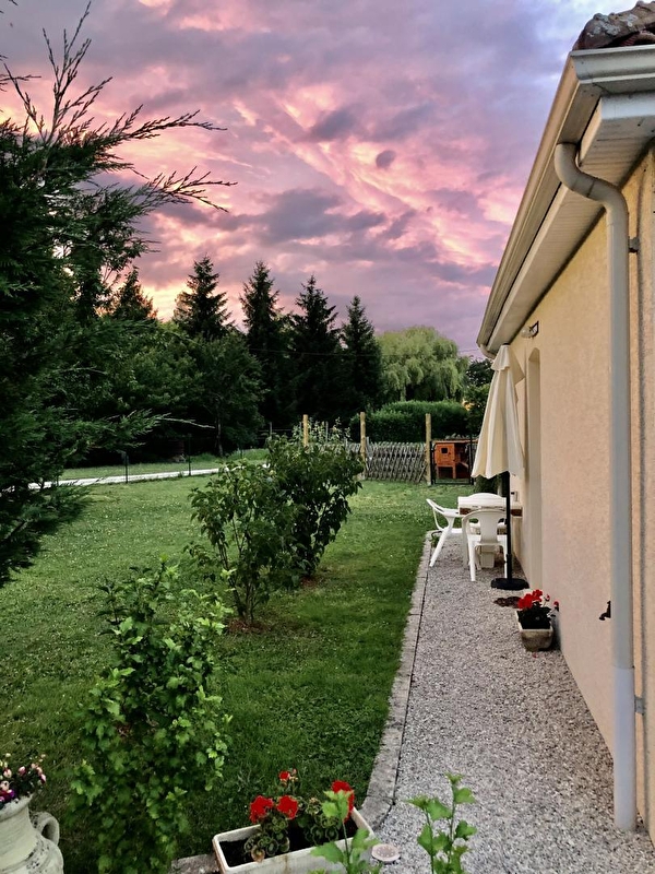 Nathalie vous accueille au sein d'une charmante villa contemporaine de style, sise au cœur d'un petit village résidentiel blotti en toute proximité de la voie verte (connectée à l'EuroVélo6) & de la Saône (véritable paradis des kayakistes & des pêcheurs, réputé pour ses célèbres silures, sandres, carpes…). En pleine campagne bressane, dans un agréable cadre champêtre & rural préservé, en lisière de champs, rivières et prairies, proche de vastes forêts domaniales (dont le Bois de Bissy situé à deux pas), au creux d'un site naturel protégé classé "Zone Natura 2000" pour son remarquable écosystème (dont une exceptionnelle réserve ornithologique riche de 160 espèces et de nombreuses variétés végétales rares). Spacieuse suite familiale de 50m² de très bon confort (totalement indépendante). Chaleureux cachet campagnard d'esprit contemporain. Ambiance coquette et douillette. Confortable & ultra spacieuse salle de bain de 9m² parfaitement équipée (dimensions rares). En bonus très privilégié, vous bénéficiez d'une « mini » terrasse privative nichée à l'abri des regards (côté entrée privative de la suite). Sur une vaste propriété close de 1500m² soigneusement aménagée (engazonnée, végétalisée & fleurie), dotée d'une double terrasse (nord-est/sud-ouest) dont une large avec salon de détente « outdoor », ainsi que d'une grande cour, véritable terrain de pétanque naturel !