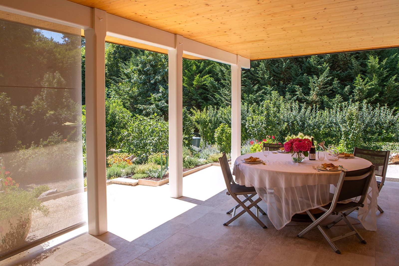Le petit-déjeuner est servi dans le salon en hiver, ou sur la terrasse aux beaux jours.