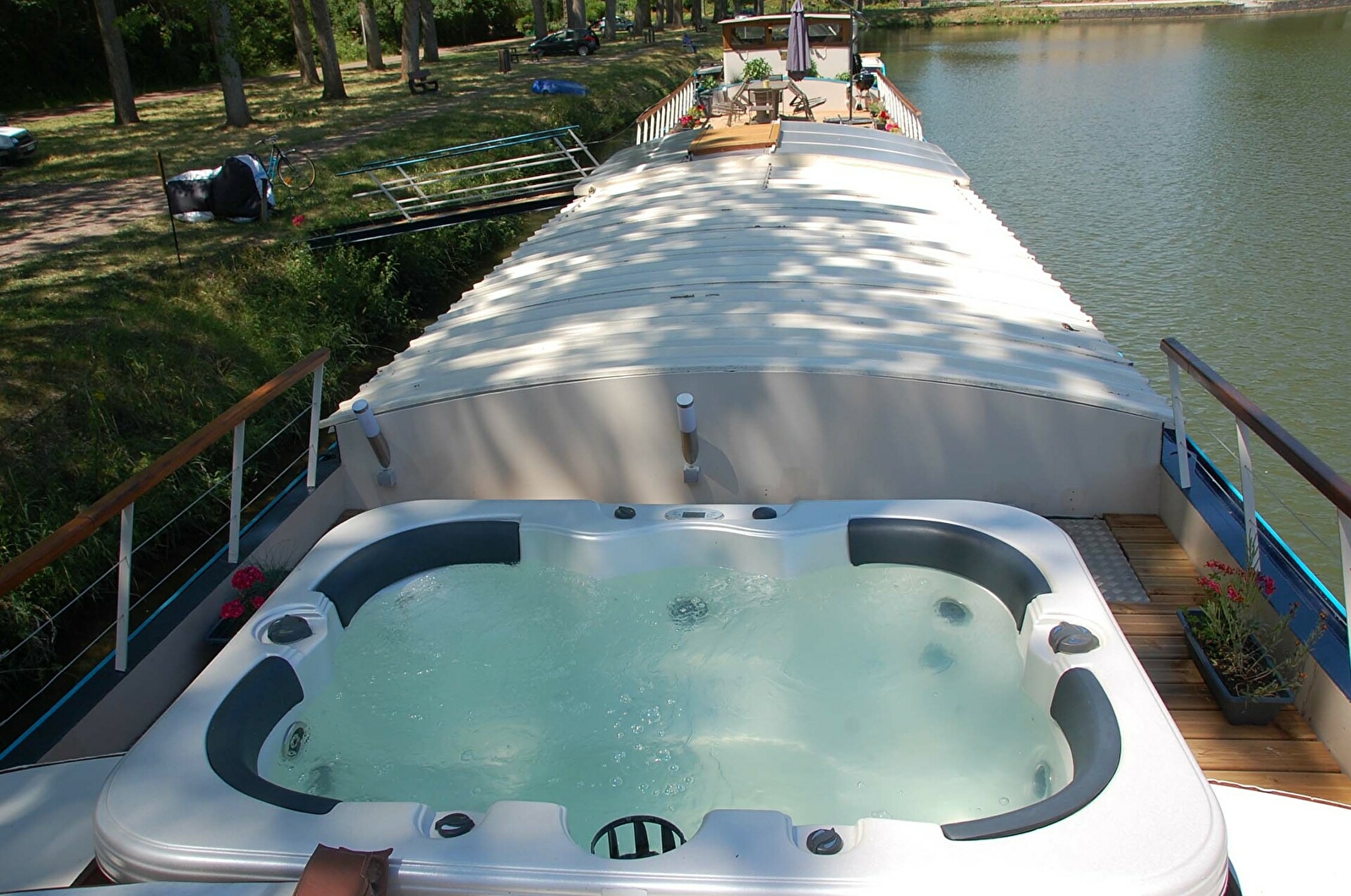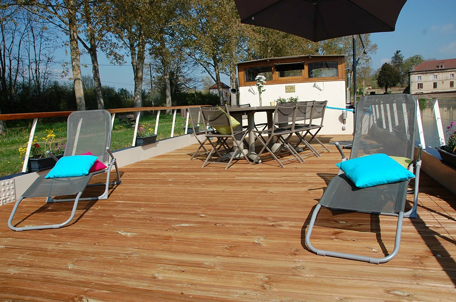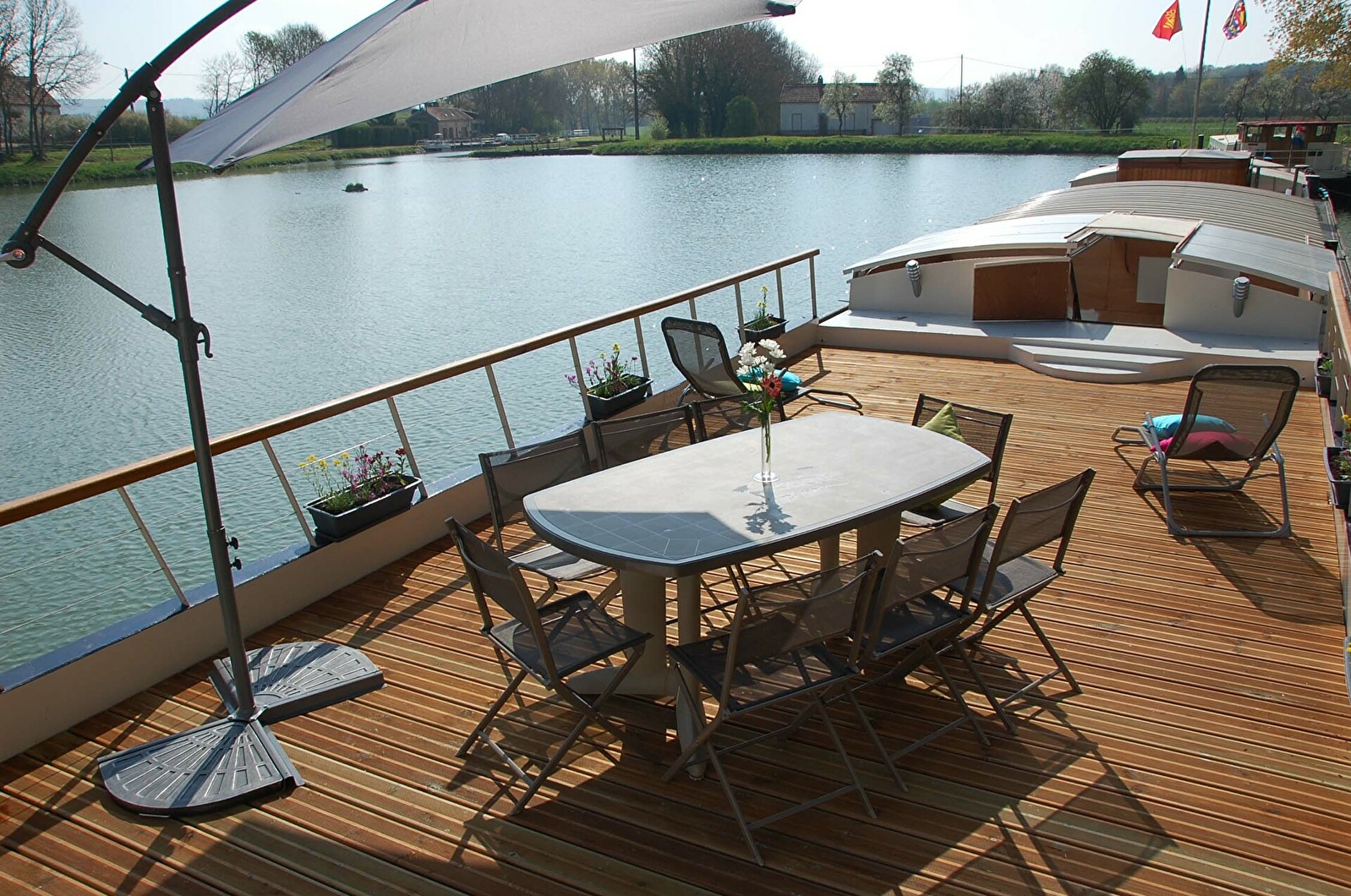 Péniche de 39 m disposant de 3 chambres tout confort avec salles de bain privatives, d'un salon-salle à manger de 40 m2 et de 2 terrasses, l'une de 40 m2 avec salon de jardin et l'autre de 12 m2 avec jaccuzi. Péniche amarrée à Escommes sur le canal de Bourgogne à 40 km de Dijon et 30 km de Beaune, accès direct depuis l'autoroute A38 sortie Pouilly-en-Auxois, à proximité du lac de Panthier, des châteaux de Châteauneuf, Commarin, Sainte-Sabine et Chailly-sur-Armançon, sur la trajectoire de la véloroute.
