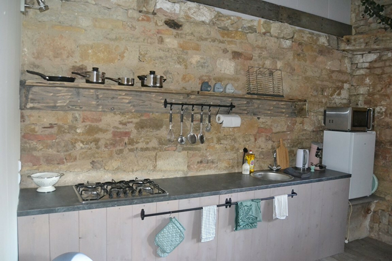 Le B & B a en fait tout d'une petite maison ou d'une chambre d'hôtel de luxe. Une salle de douche et toilettes privées, un coin salon avec poêle à bois et TV, une cuisine avec table à manger et vous dormirez sur une mezzanine ouverte. Possibilité de louer une voiture de collection ou un solex.