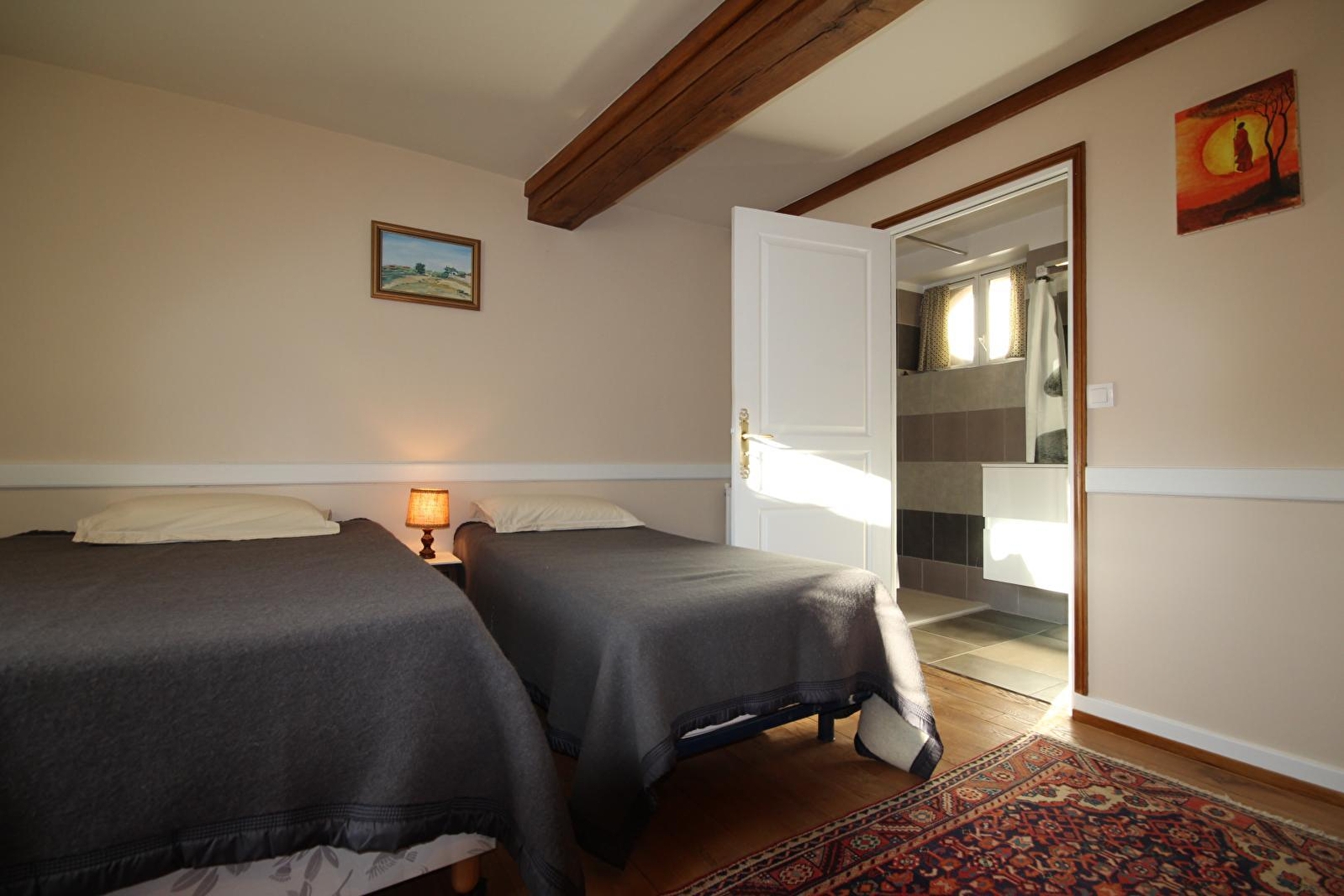 Daniel vous accueille au sein d’une ravissante ferme de pays datant du XVIIIe siècle, pétrie d’histoire & intégralement restaurée, nichée sur un ancien domaine viticole, à deux pas des vignes, au sein d’un paisible pittoresque village viticole parfaitement sauvegardé. Blotti au pied du Mont Avril culminant à 421m (belvédère panoramique & site protégé en zone "Natura 2000" pour ses riches écosystèmes), au cœur même du vignoble du célèbre AOC de Givry (fleurons des vins de Bourgogne dont il se dit qu'il était le vin préféré du roi Henry IV !), Jambles dispose d'une rente de situation unique comme d'un patrimoine historique notable (église romane du XIe, belles demeures bourgeoises historiques, moulin du XIXe, lavoirs, cadoles…) et profite d’un magnifique écrin paysagé alentour (protégé en ZNIEFF pour ses richesses faunistiques & floristiques), lové au creux d’un vallon cerclé de vignobles, au sein d’une douce campagne préservée mixant agriculture, pleine nature & viticulture, entre prairies bocagères & belles forêts sauvages. Chambre de très bon confort. Chaleureux cachet campagnard aux touches contemporaines. Agréable petit balcon panoramique abrité (avec espace détente) complété par un mini jardinet privatif agrémenté d’un salon de jardin blotti "au pied" de la chambre. Propriété close dotée d’un grand poulailler (poules, cannes, oies & pigeons paon) & d’un jardin clos avec verger fruitier (pommiers, pruniers, poiriers, cerisiers… / cueillette possible).