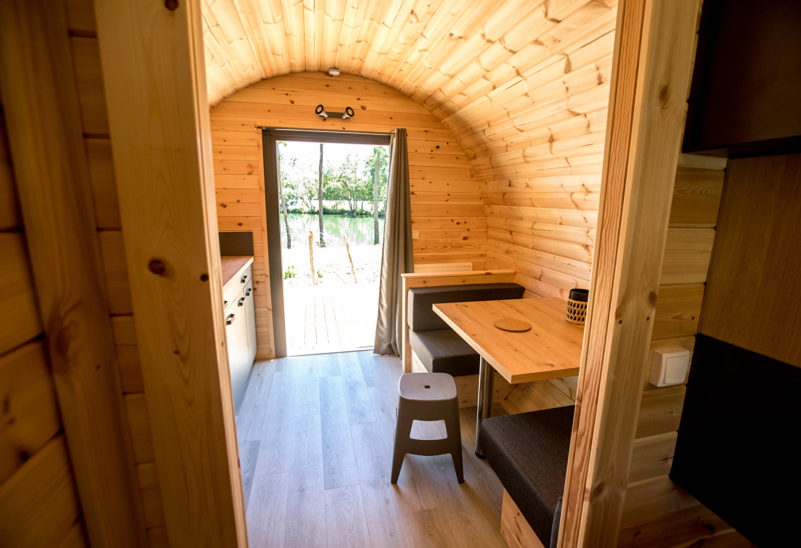 Equipés d'un lit double, une salle de bain, une kitchenette sans plaque de cuisson, un micro-onde, un petit frigidaire, un espace salon et une terrasse vue sur le lac, les Tonneaux Bourguignons sont parfaitement adaptés pour les couples désireux de calme et d'originalité.