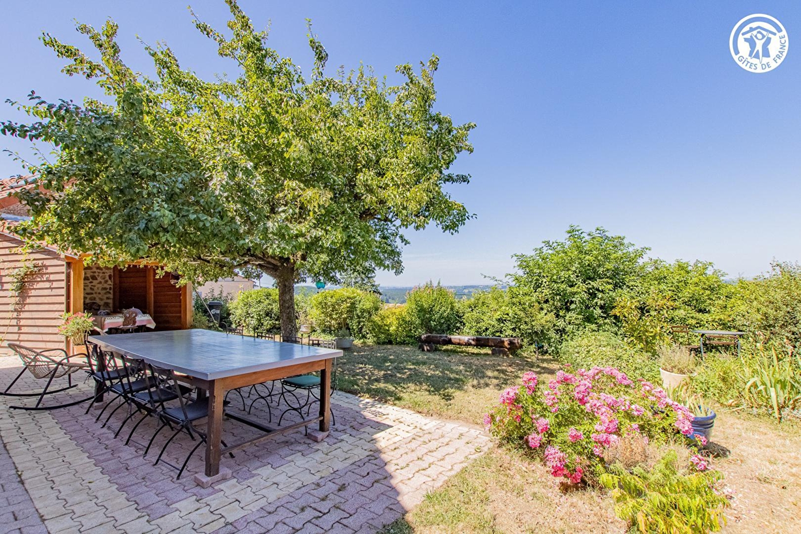 Catherine & Renzo vous accueillent au sein d'un charmante ferme traditionnelle de la fin XIXe, soigneusement restaurée, blottie en promontoire à flanc de colline tel un "belvédère panoramique", sur un coteau ouest exposé offrant une exceptionnelle vue dégagée sur le Charolais comme de sublimes couchers de soleil. Agréable cadre alentour, niché en lisière des prés sur les premières hauteurs du village (accueillant leurs poneys comme les célèbres vaches charolaises en saison), à deux pas du cœur du pittoresque bourg de Beaubéry, "Haut lieu de la résistance" durant la seconde guerre mondiale doté d'un étang de pêche réputé de 15 ha. En pleine campagne préservée du haut charolais (protégée en ZNIEFF & "Zone Natura 2000" pour ses remarquables richesses faunistiques & floristiques), niché au creux d'un apaisant vallon de prairies bocagères cerclé de belles forêts sauvages, verdoyante montagne douce mixant pleine nature & agriculture. Spacieuse chambre familiale de bon confort. Chaleureux cachet campagnard d'esprit "shabby chic". Beaucoup de charme. Ambiance douillette. Agréable terrasse panoramique naturellement ombragée sous un arbre (que complète une terrasse abritée) ouverte sur une apaisante propriété close de 6000m², soigneusement fleurie, végétalisée & très arborée, intimiste écrin végétal lové à l'abri des regards comprenant une très belle piscine chauffée (avec douche & cuisine d'été), de nombreuses espaces de repos & détente (exposés & ombragés), une balançoire & un poulailler.