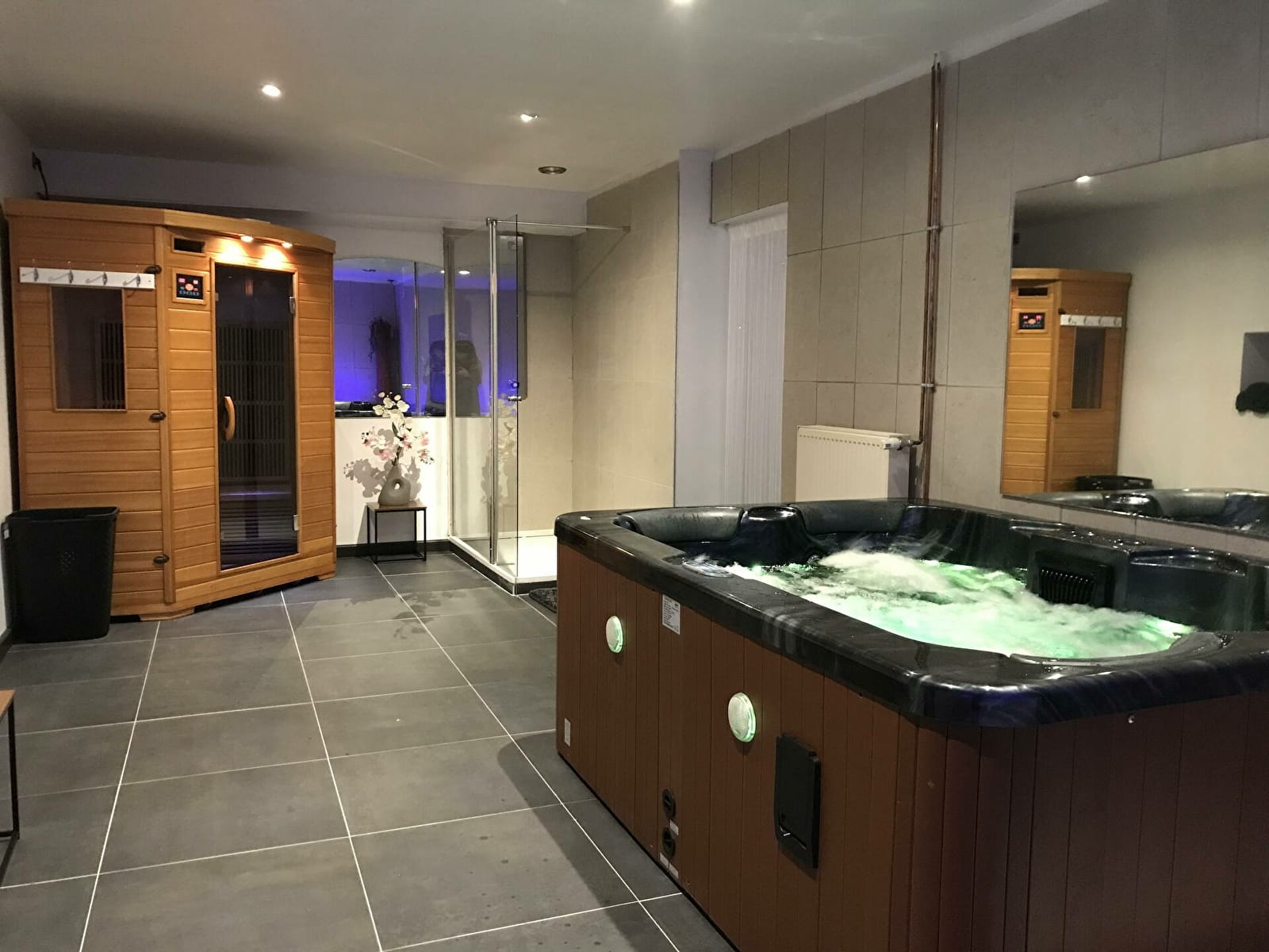 Chambre 3 : sauna et spa intérieur (1h) + petit déjeuner : 160€