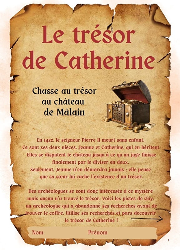 Munis de votre carnet de bord, partez à la recherche du trésor que se disputent Jeanne et Catherine, les deux sœurs ennemies ayant hérité du château...
