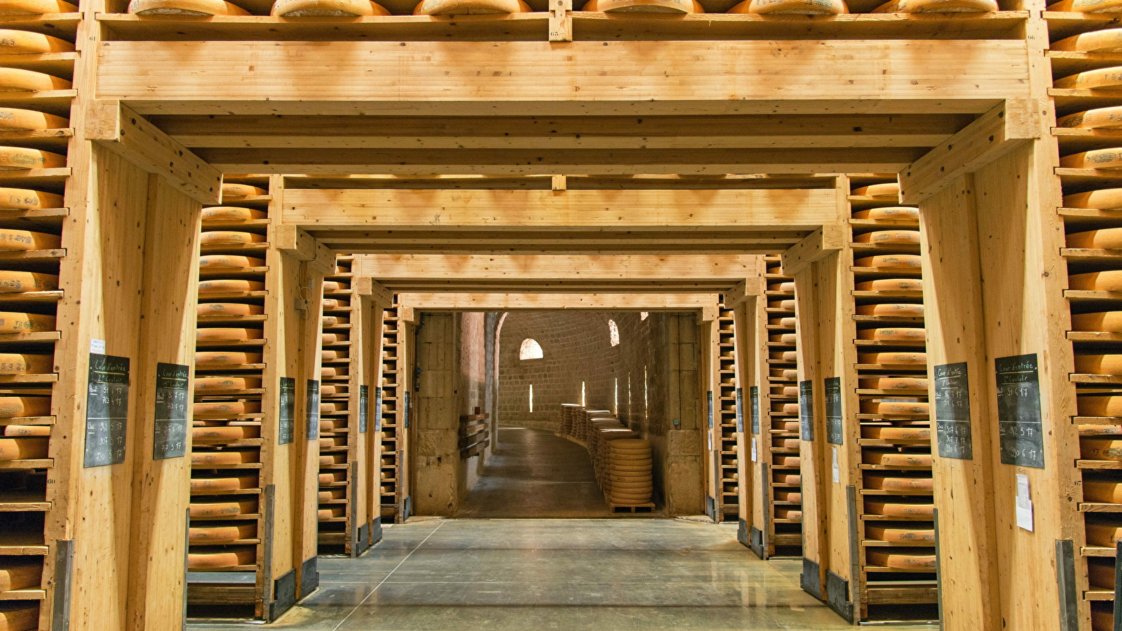C'est dans la pénombre d'une cave d'affinage que le comté va se transformer. Placé sur des planches d'épicéa, le fromage va faire l'objet de soins attentifs : il sera régulièrement salé, frotté, retourné.