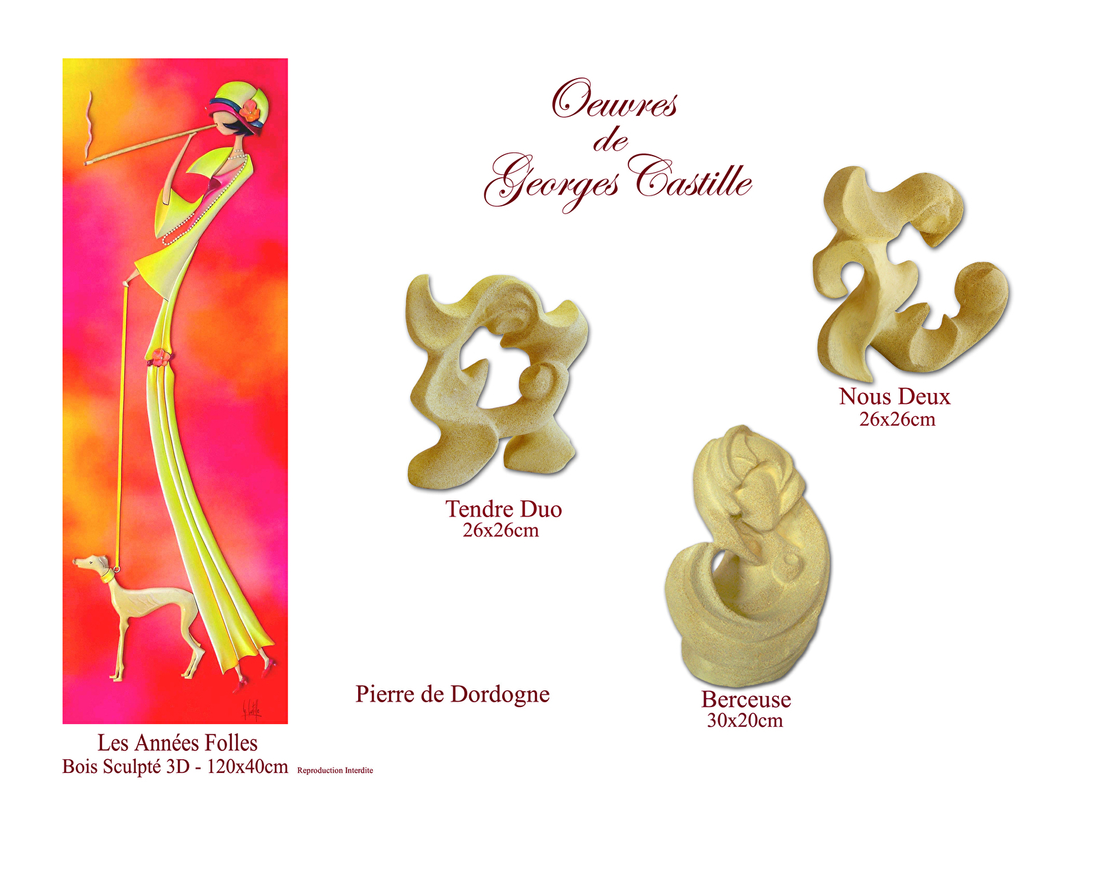 Georges Castille est natif de Dijon. Il nous fait découvrir le marbre "Rosé de Bourgogne" et nous offre des sculptures aux lignes savamment épurées. La matière est dure à travailler, le ciseau fait sauter les éclats de pierre, le temps ne compte pas, l'artiste se joue des difficultés.
