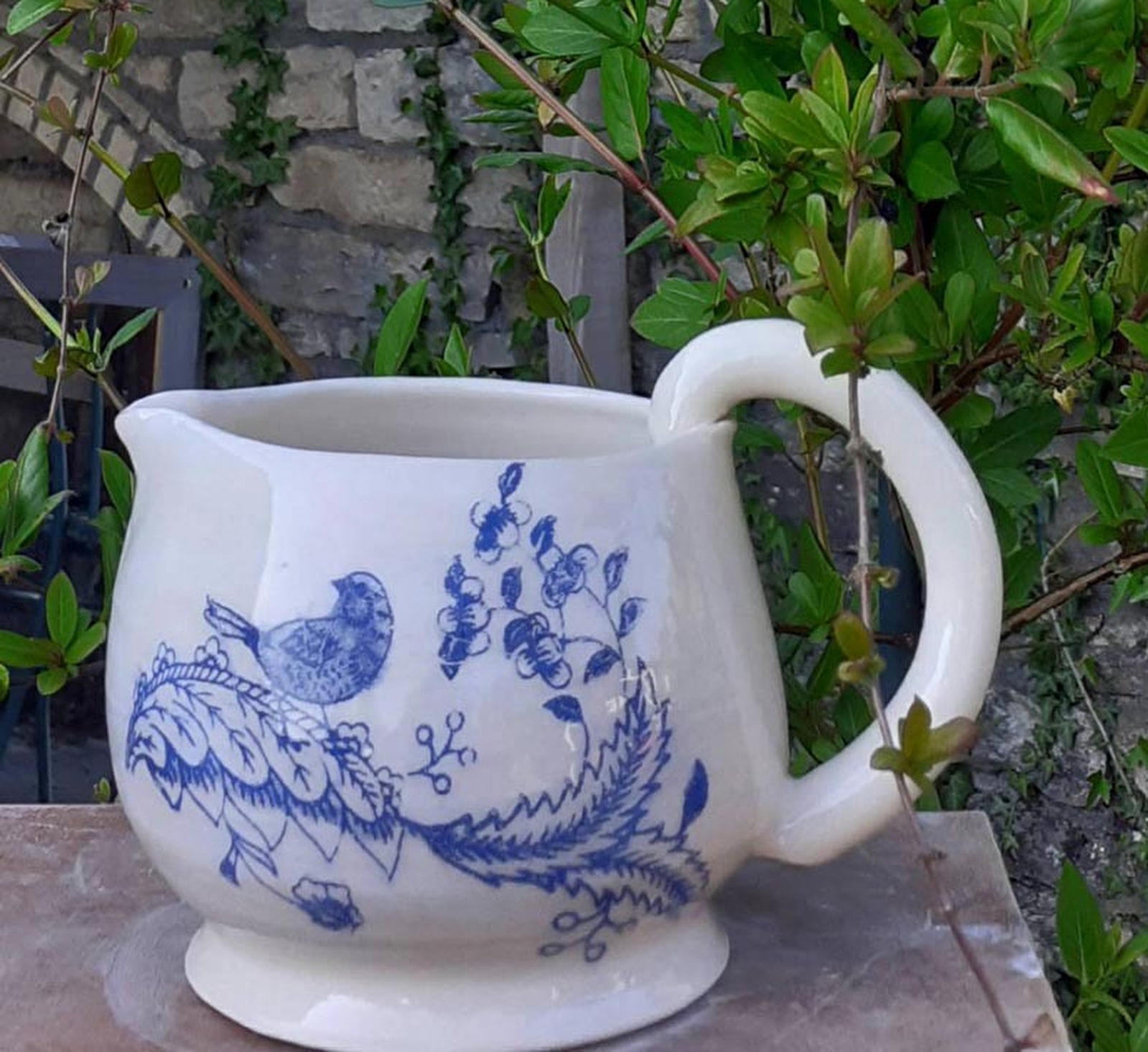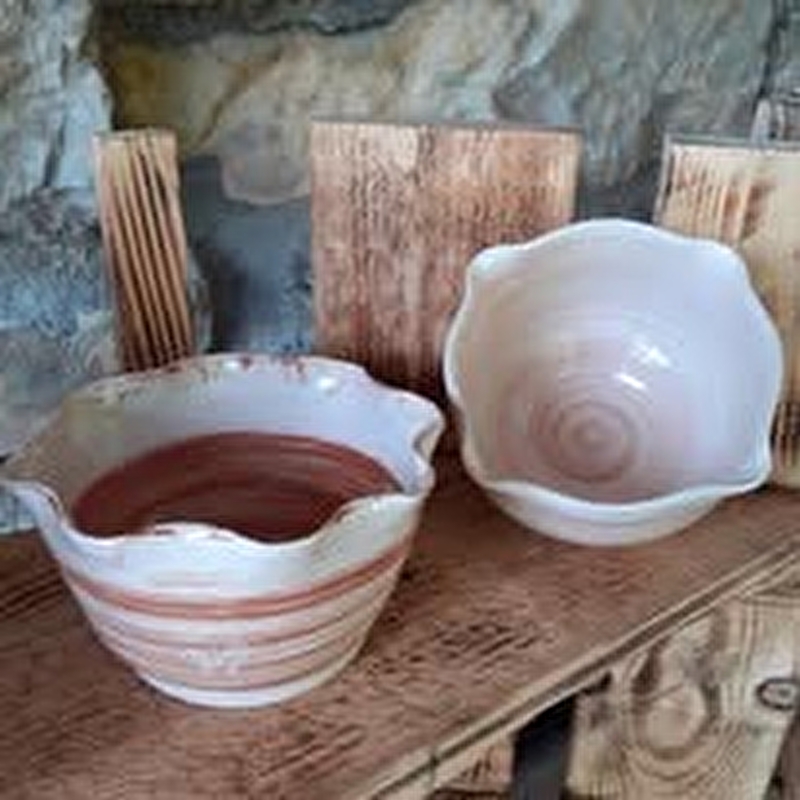 Ses créations sont variées ; pot à eau, bol, vase, coquetier, magnets ainsi que son invention "le Chauffe Coillotte de Rioz"....