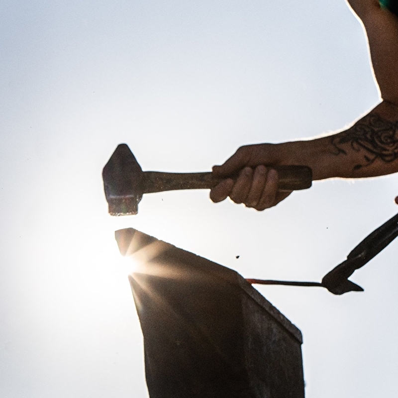 - des stages (d'une demi-journée à deux journées) afin de permettre de découvrir et de pratiquer les principes fondamentaux de la forge à travers la réalisation d'un objet à votre usage (élément décoratif crochets, supports, couteaux, bijoux...).
