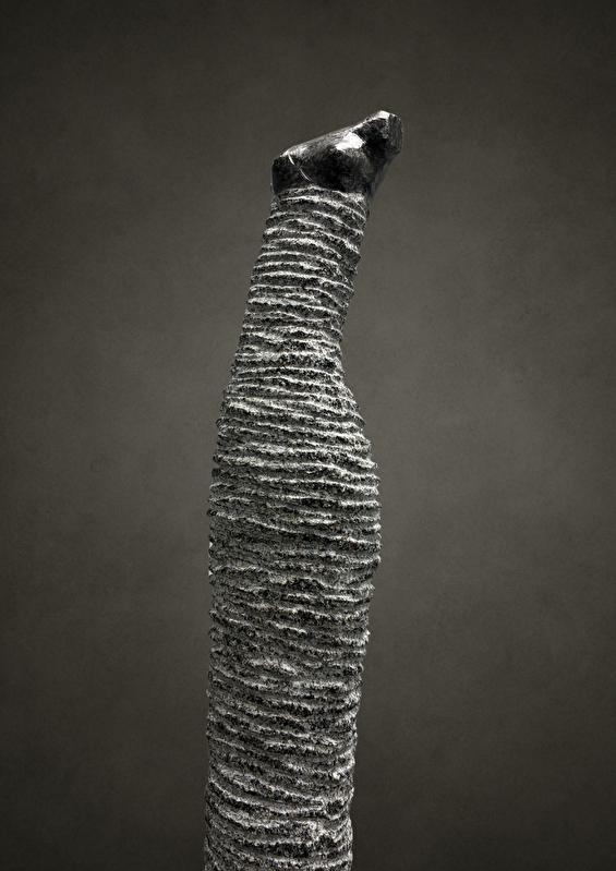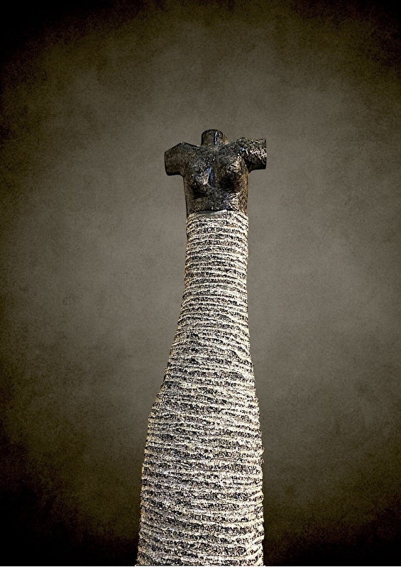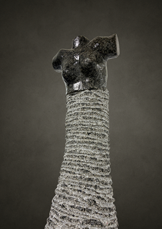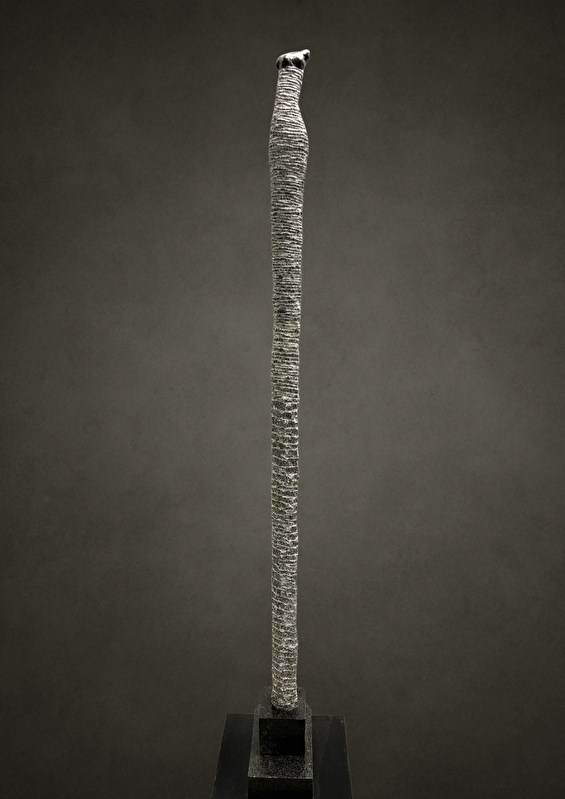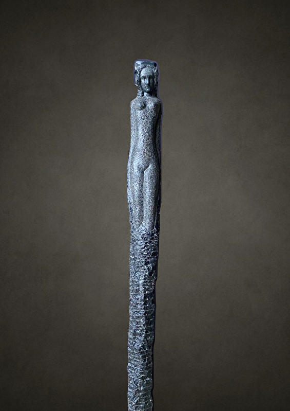 La verticalité est au cœur de ma recherche. J’aime cette forme qui s’arrache à la masse, qui se dresse malgré son poids, qui s’élance vers la lumière. Dans mes sculptures, la figure apparaît souvent longiligne, presque vibrante, comme un souffle qui traverse la pierre depuis l’intérieur.
