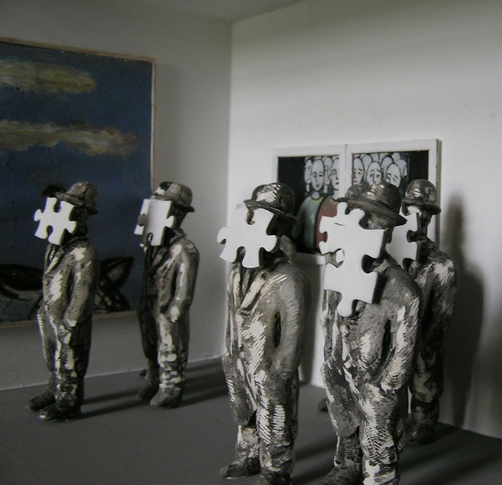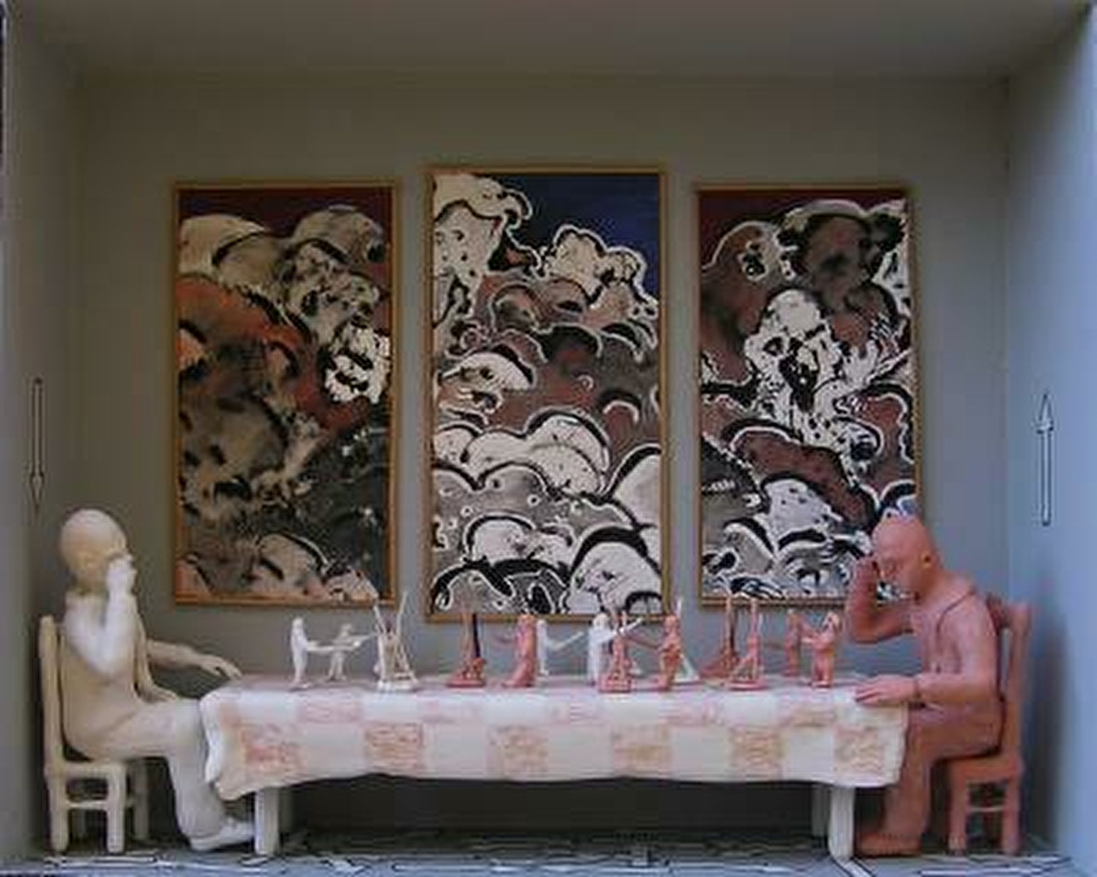 Un monde miniature à part où René Jullien et Martine Balata font pousser de petits personnages dans des boites à malices à rêves révoltes ou à cauchemars. Des portraits également tournant autour du "je suis, celui, celle.... et des livres objets...