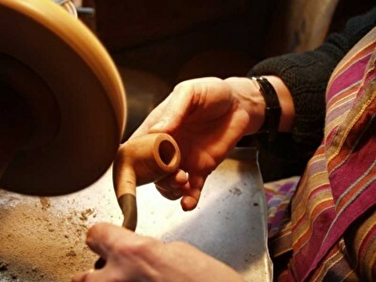 Démonstration du tournage d’une pipe de bruyère.