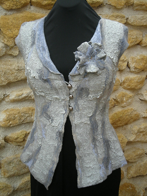 Art textile. Designer textile spécialisé dans le feutre artisanal. Feutre et feutrage à l'aiguille. Confection de vêtements, chapeaux, écharpes, châles, sacs, bijoux, jouets et sculptures. Utilisation de matériaux naturelle : soie, laine, mousseline de soi, fibres de bambou, d'ortie, de soie et de lin. La combinaison des fibres naturelles crée une texture unique dans son genre. Modèle unique et sur mesure.