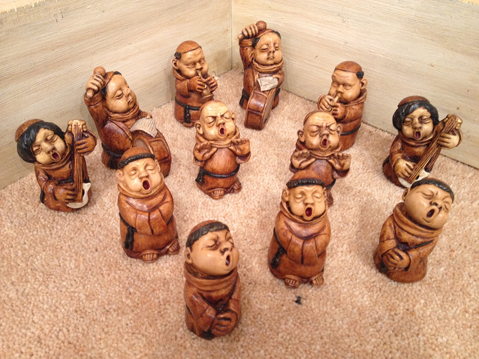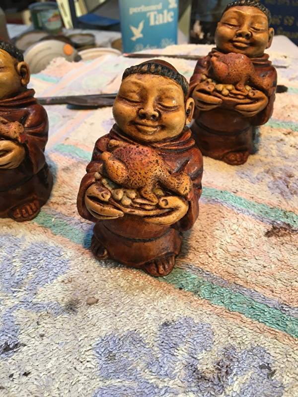 Nombreux modèles : consoles médiévales, vierge à l'enfant, vierge noire, vierge médiévale, saint Vincent, saint Jacques, saint Charbel (libanais), saint François, moine érudit, moine de cluny, ...