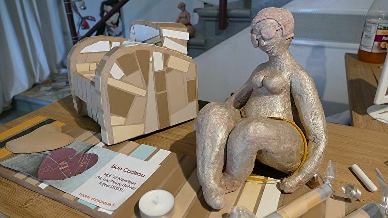 Des stages de perfectionnement ou d'initiation sont possibles sur RDV pour les enfants et les adultes. Chacun peut venir créer sa propre mosaïque à Prissé !