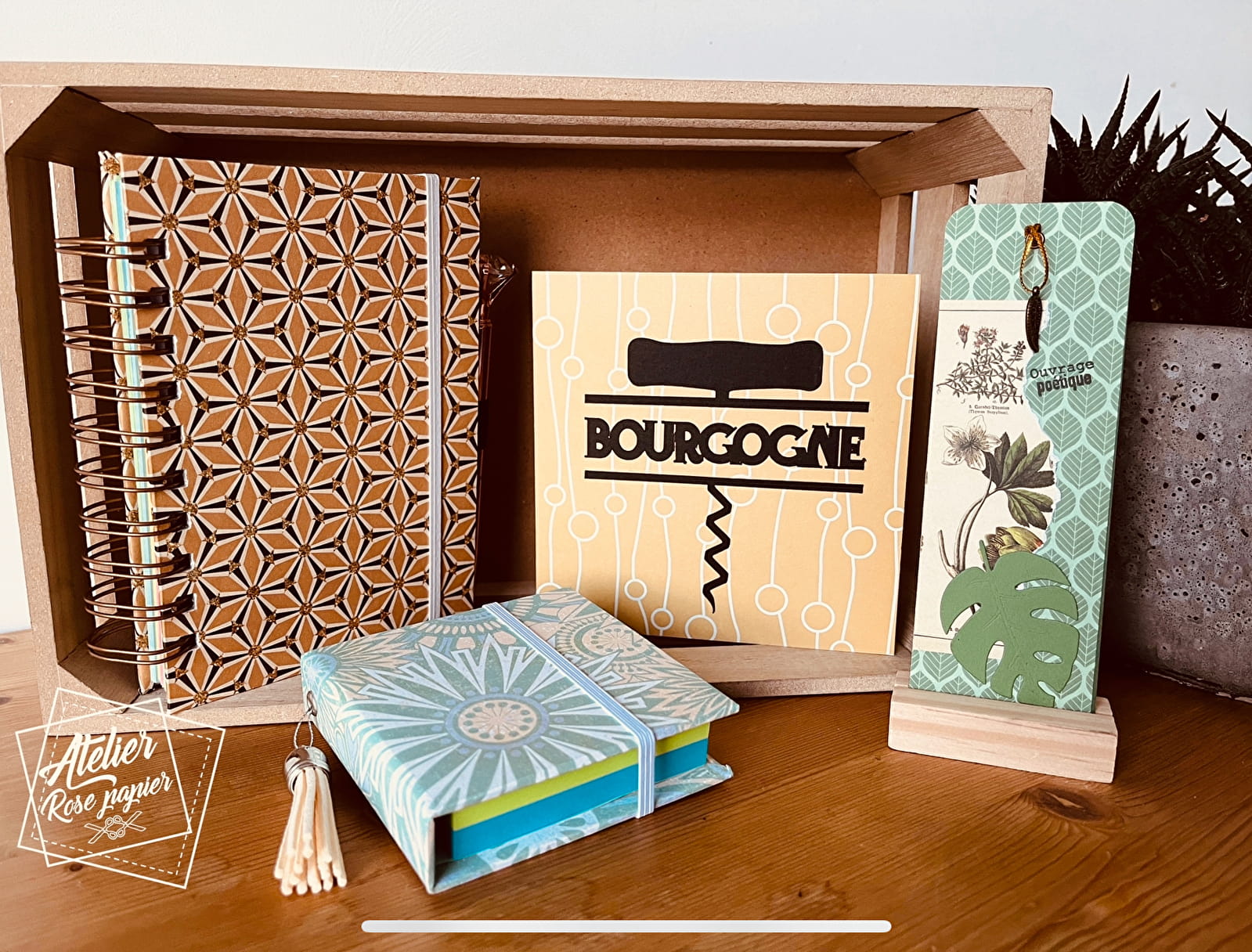 Carterie créative et papeterie artisanale, Atelier Rose Papier vous propose des cartes personnalisées selon vos évènements (Anniversaire, remerciements, naissance, vœux, Noël, mariage, condoléances...), des cartes permettant d'envoyer un message de votre passage en Bourgogne à vos proches. Egalement, des carnets, des marque-pages, des magnets, des porte-notes...