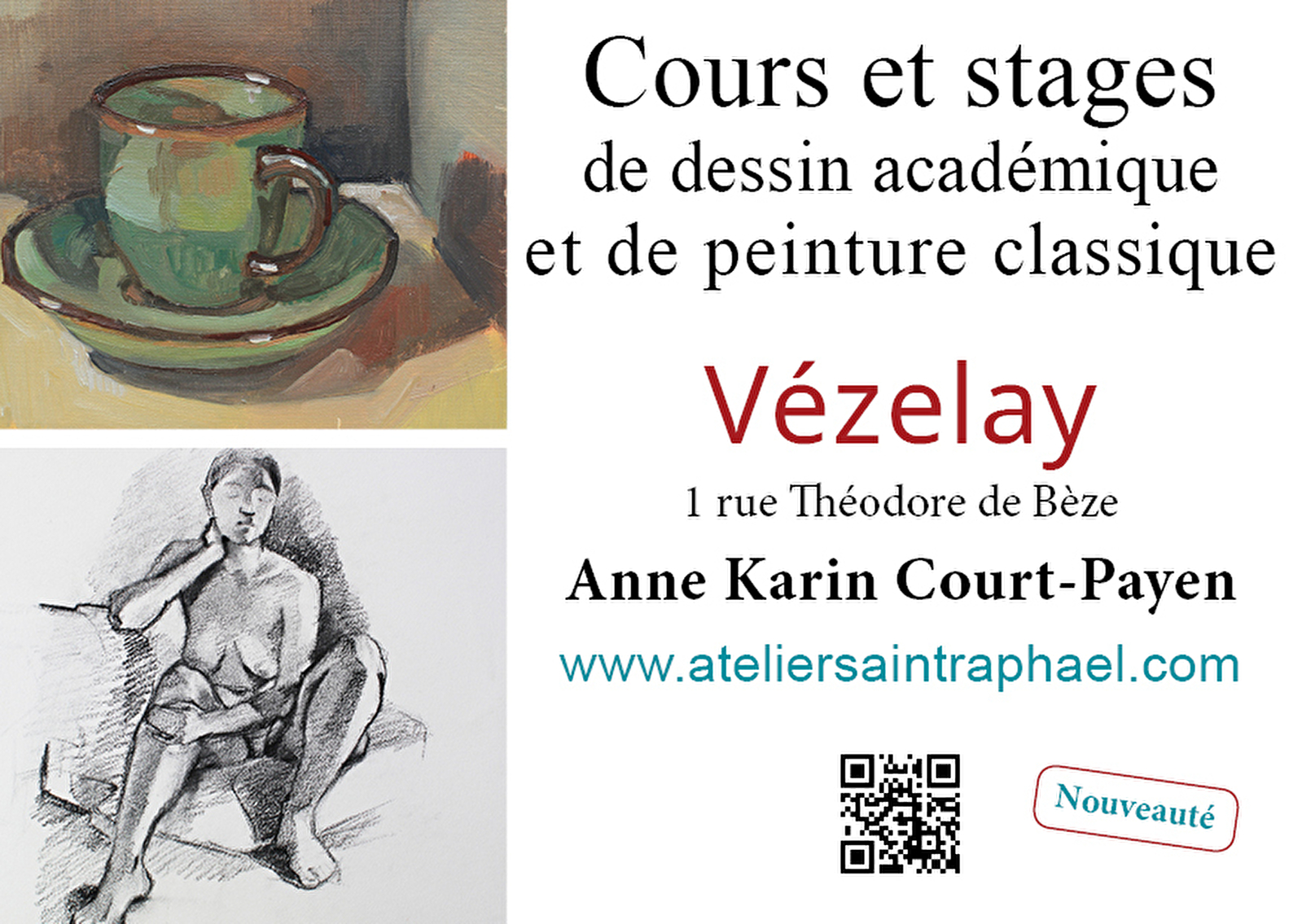 ÉCOLE d'ART : Anne Karin enseigne depuis 2003 à Paris et depuis 2025 à Vézelay. Les cours classiques et académiques sont ouvert à tous, tout niveau et donnent à vivre un moment fort d'apprentissage artistique dans des petits groupes en toute convivialité.