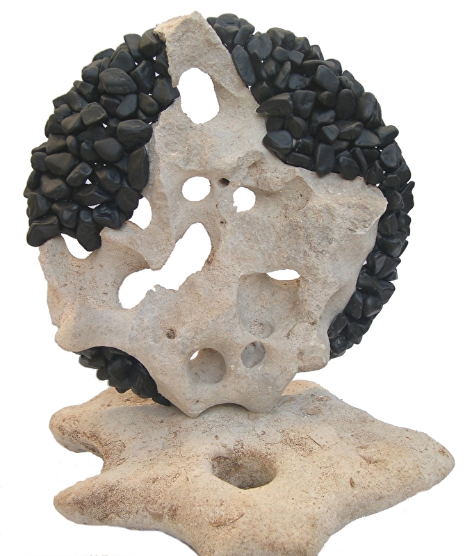 "Après plusieurs années de recherches dans les domaines de la littérature, de la photographie, du vitrail, la sculpture reste au centre de mes créations. M'éloignant des techniques traditionnelles, je me suis rapproché d'avantage vers l'adjonction de roches entre elles, soit de même nature, soit de nature différente, pour créer des sculptures tournées vers des compositions architecturales de pierres." Marc MUGNIER