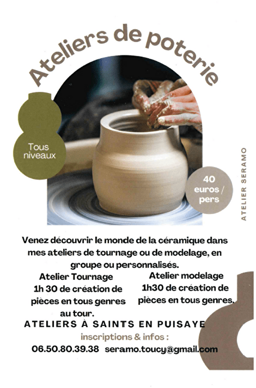 Venez découvrir le monde de la céramique dans mes ateliers de tournage ou de modelage, en groupe ou personnalisés. Atelier tournage d'1h30 de création de pièces en tous genres au tour. Atelier modelage d'1h30 de création de pièces en tous genres.