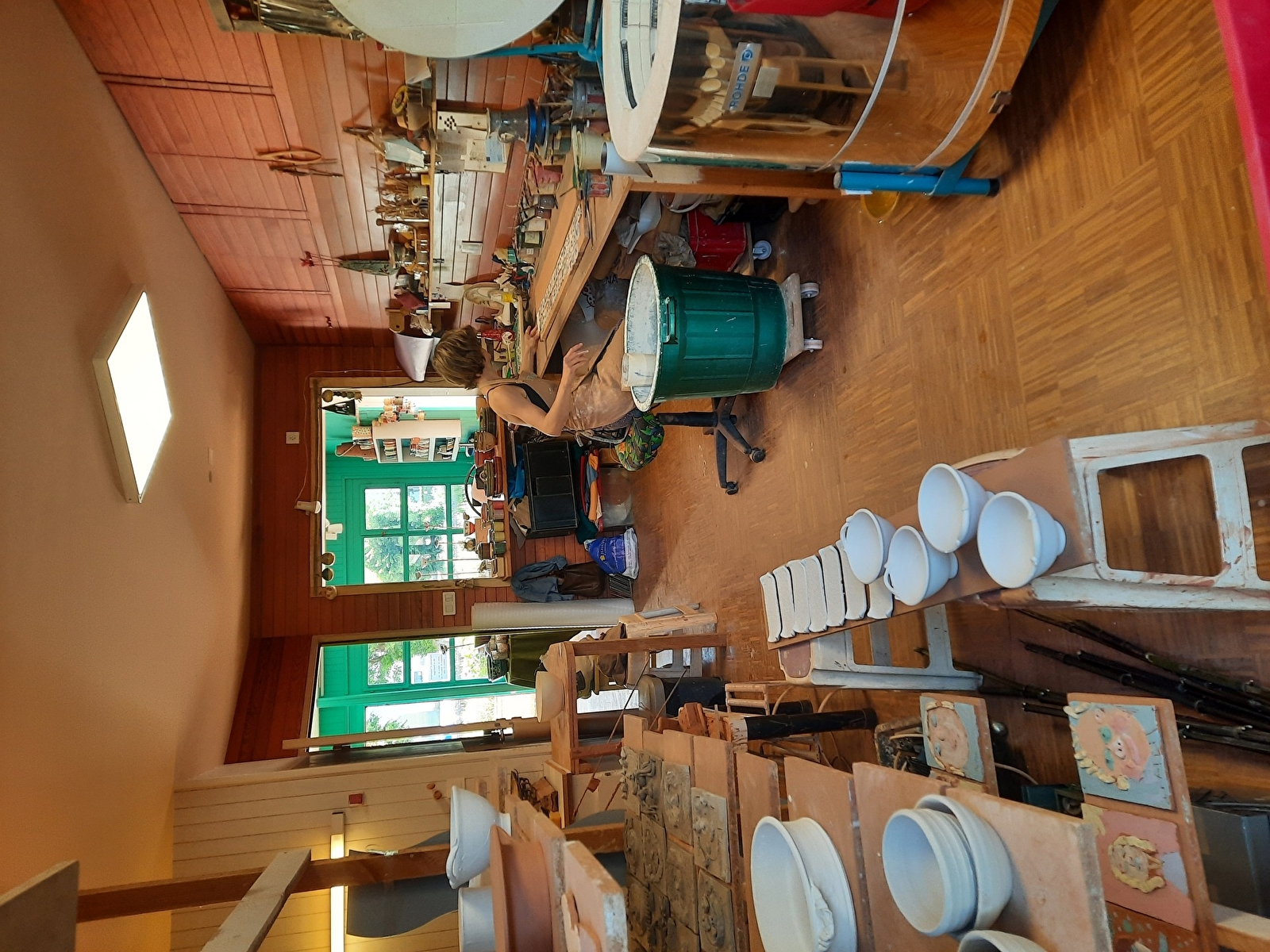 Vanessa, potière de formation, depuis de nombreuses années. Philomène, récemment tombée les pieds et les mains dans la terre. Deux entités différentes qui se révèlent par une passion commune : la terre. Nous fabriquons des poteries utilitaires, de la vaisselle, des vasques de salle de bain, des crédences, ainsi que des poteries décoratives pour le jardin ou la maison. Nous mélangeons nos idées, et nos décors en sont d’autant plus variés. Tous nos articles sont tournés, façonnés, décorés et cuits sur place. L'emplacement, face au Canal de Bourgogne qui traverse Tonnerre, donne une ambiance lumineuse à la boutique, et réhausse les couleurs vives de la céramique. Dans la boutique, vous voyez l'atelier ! C'est un plus dans le "consommer local" !