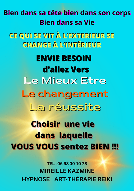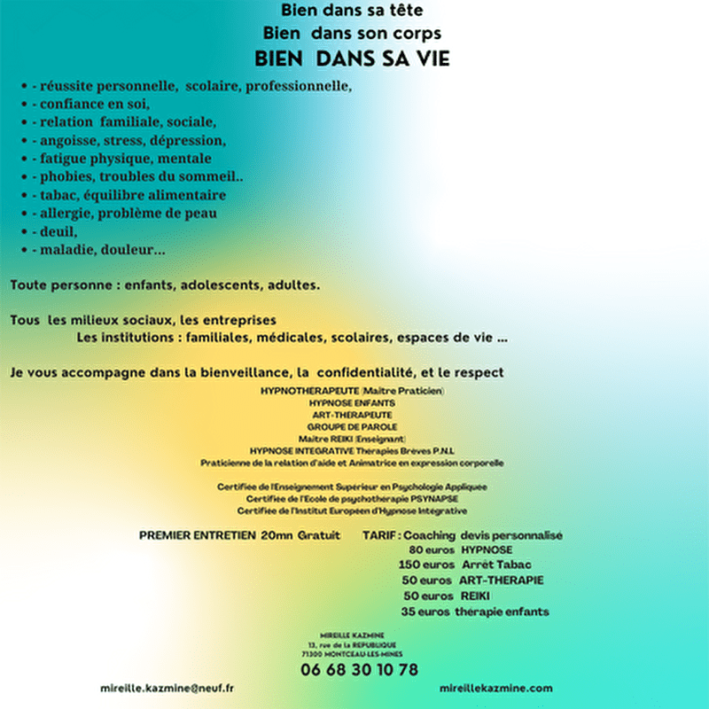Art-thérapeute, hypnothérapeute, reiki, PNL.