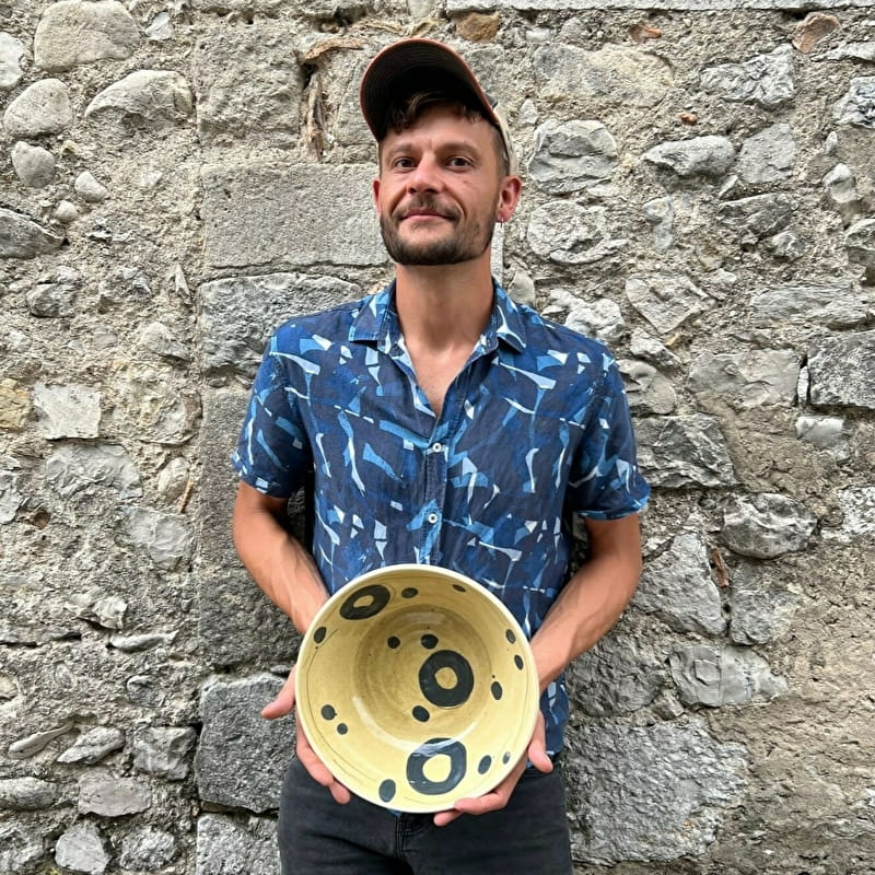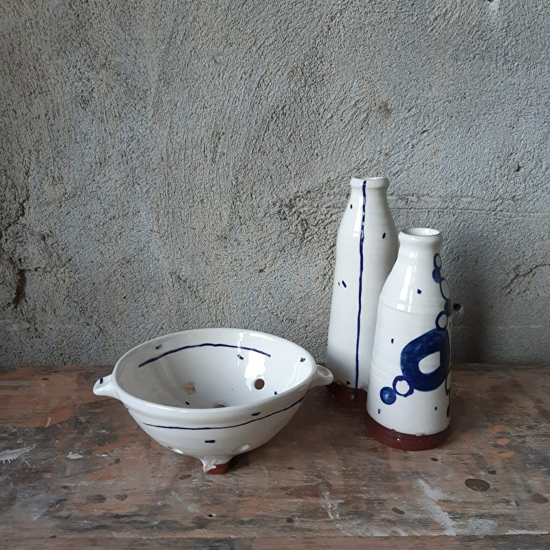 Joyeuse, gaie et colorée, la terre vernissée est la technique que j'ai choisi pour réaliser ma poterie. Je revisite librement la tradition céramique avec légèreté et humour, et je cultive la singularité de mon expression. Mes pots façonnés à la main se vivent au quotidien, se partagent à table, s'utilisent en cuisine et trouvent leurs places dans le fouillis des jardins.