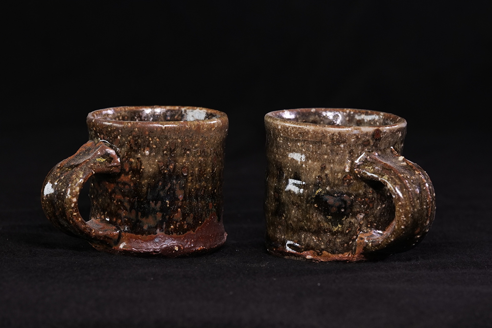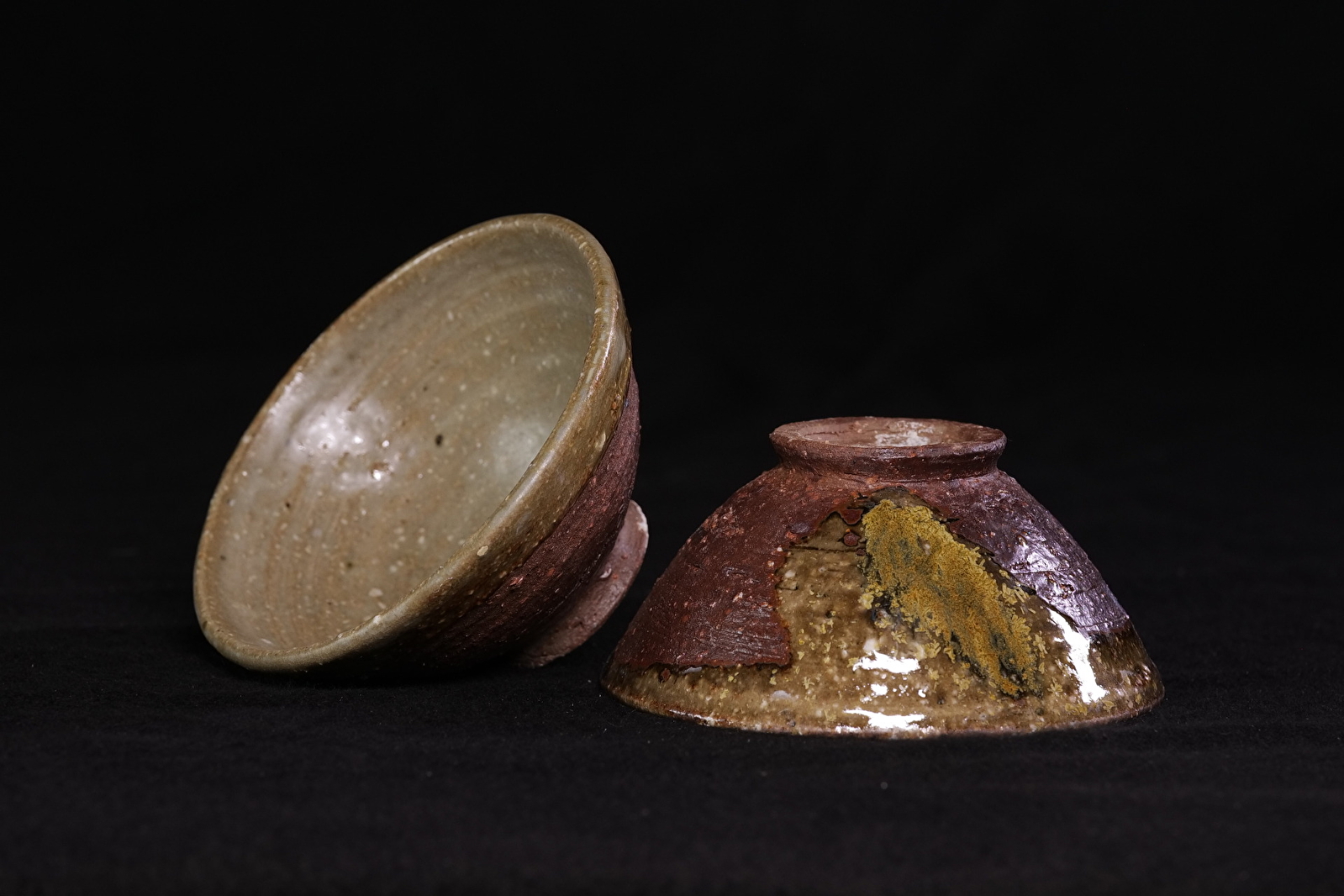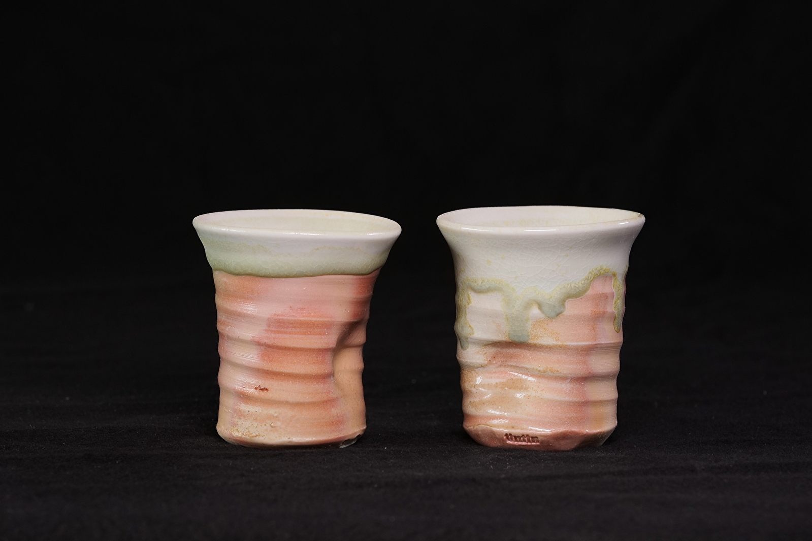 Je façonne mes pièces grâce au tournage, afin de produire des pièces en série, cuites à haute température. J'utilise du grès et de la porcelaine, que je décore à l'engobe et que j'émaille avec des émaux de ma fabrication, puis que je cuis au gaz (en réduction) ou au bois.