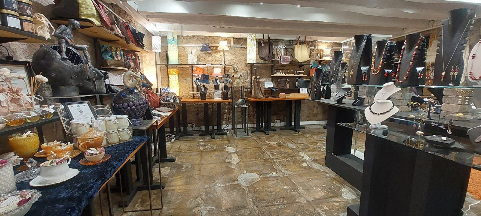Vous trouverez des créations exceptionnelles, sensationnelles, atypiques, renouvelées tous les 6 mois et françaises, fabriquées par des artisans d’art : poteries, accessoires de mode dans différents textiles (gants, étoles, foulards, chapeaux, vêtements…), cuir (sacs, ceintures…), mais également des objets décoratifs, du mobilier, des peintures et des sculptures…