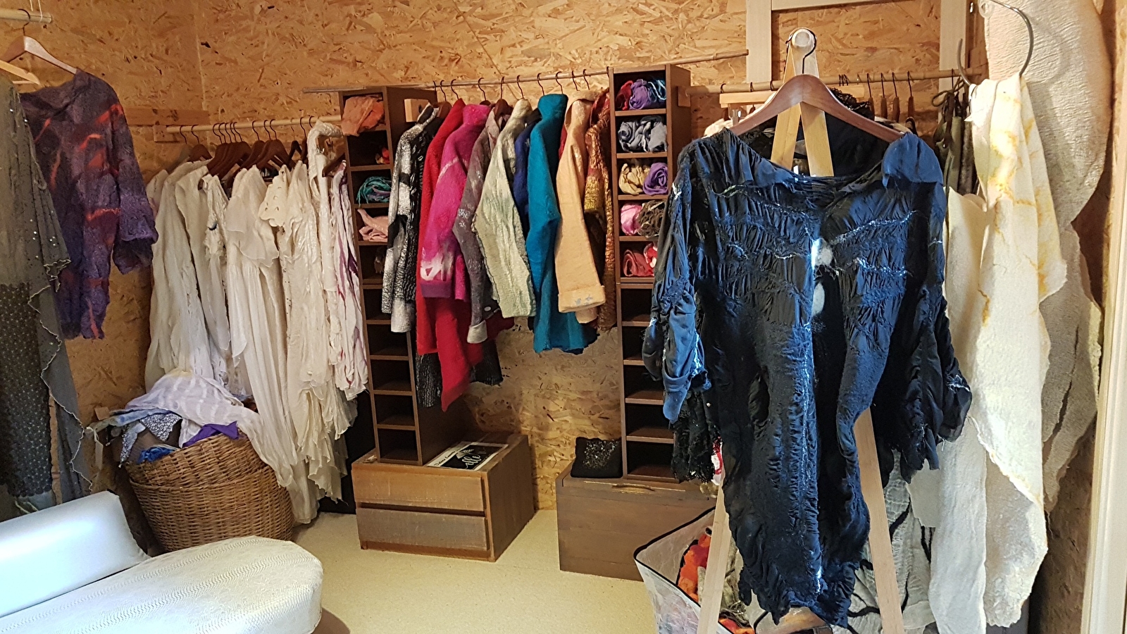 Dans son atelier, Valérie Lamotte combine avec un grand savoir-faire stylisme et art du feutrage. Robes, chemises, pulls, écharpes, rideaux, paravents, plaids... son champ d'activité est si vaste qu'il semble infini ! Dans tous les cas, Valérie vous aidera à trouver des solutions adaptées, colorées et authentiques à vos envies !