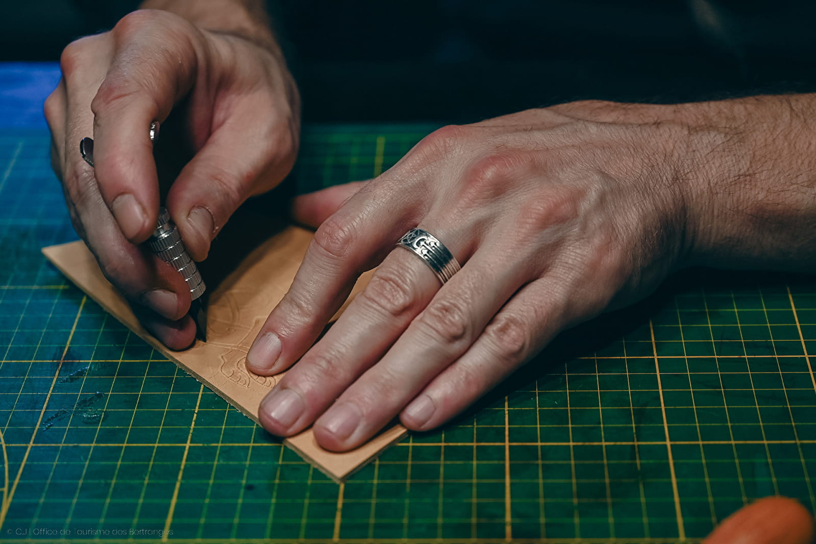 De l'autre, Julien Maudrait, Artisan d'Art, Plasticien. Joaillier des Pierres oubliées, joaillier des Pierres déchues. Un touche à tout également qui sculpte, modèle, qui embosse et coud le cuir, travaille le bois, le fer et tout ce qui lui tombe entre les mains.
