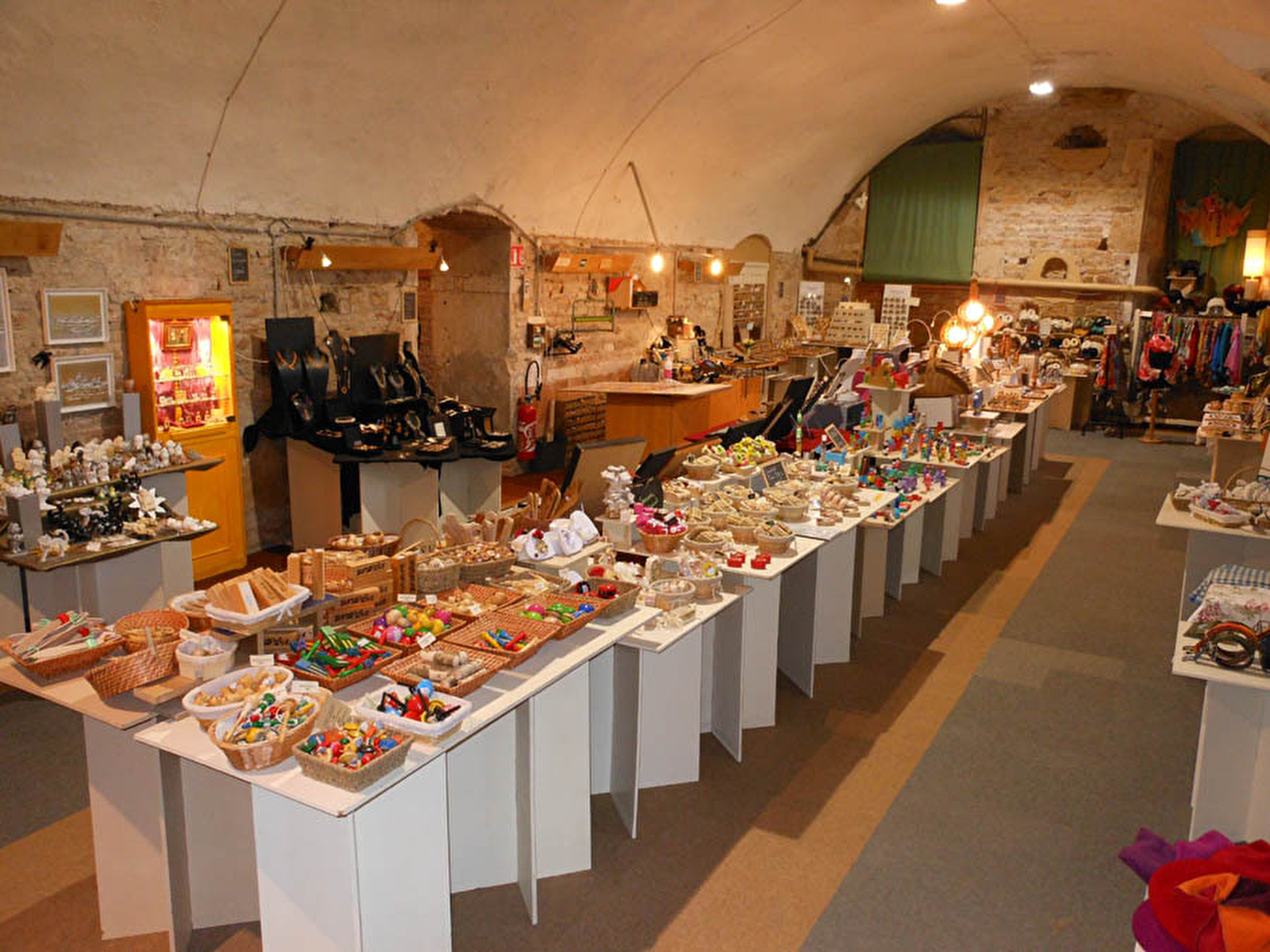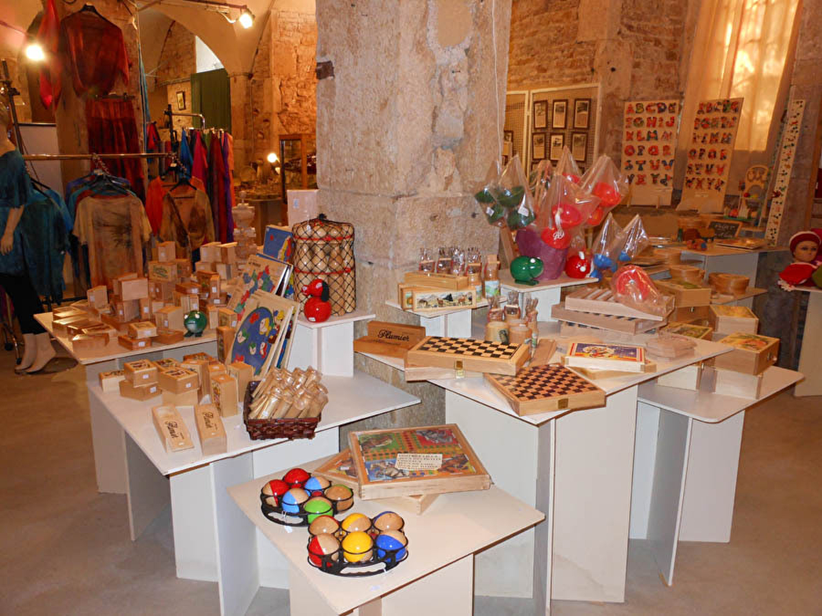 Exposition-ventes (sur 800 m²). 3 salles voûtées. 60 artisans d'art (cuir, bois tourné, puzzle, bijoux, poterie...) et salle d'exposition réservée aux produits gourmands et gastronomiques représentés par 30 producteurs. Entrée gratuite.