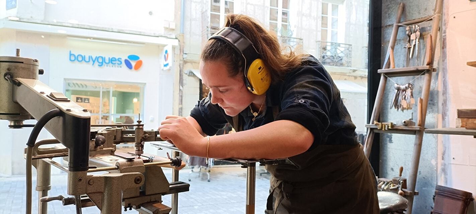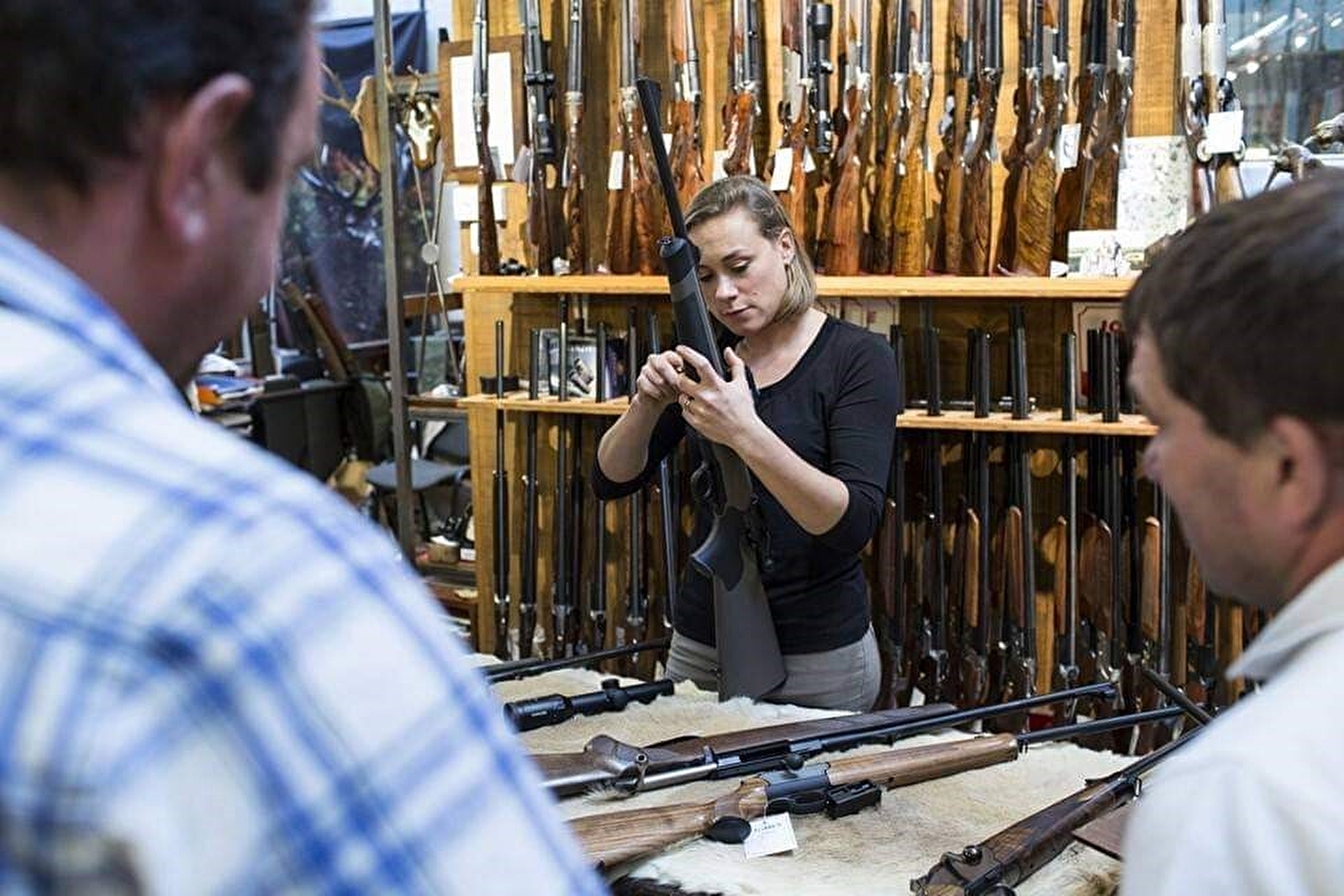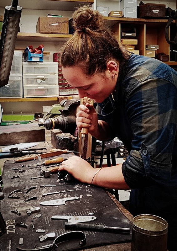 Pauline Zacharie, seule femme en France a être titulaire d'un brevet des métiers d'art en armurerie , et au service de ses clients depuis 18 ans dans cette maison familiale.