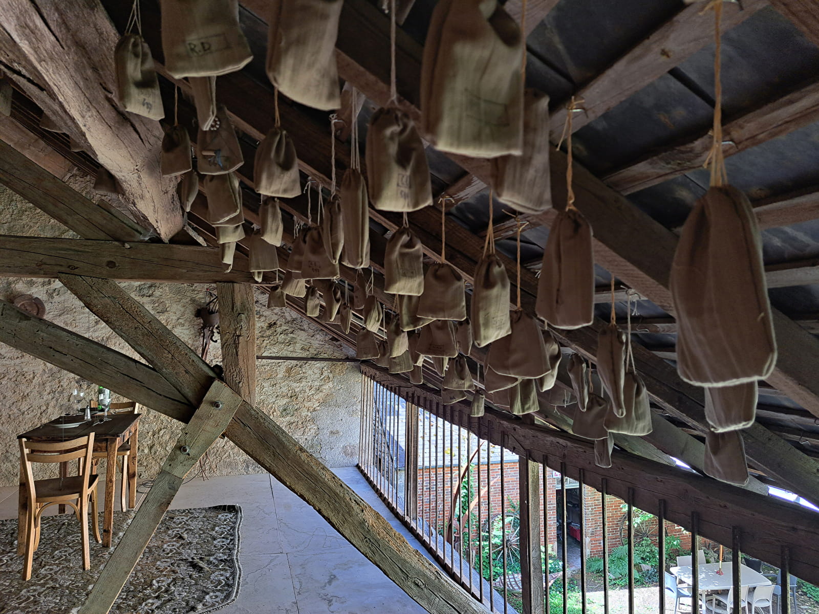 Au cœur d'un collectif d'artistes, Henk Slomp, sculpteur, a choisi de déployer une parcelle de son univers empreint de nuances ocres, brunes et rouges. Selon les espaces où il se trouve, des accumulations de mystérieux paquets, vestiges du passé, tapissent un mur, à proximité d'un romantique tête-à-tête : une table, des chaises et des couverts dressés à la française, tous en lévitation, évoquant un temps révolu. Et si on lève les yeux, des centaines de sachets cousus à la main, renfermant les rêves des visiteurs passés, nous fixent tel un vertige enserrant des secrets presque inatteignables.