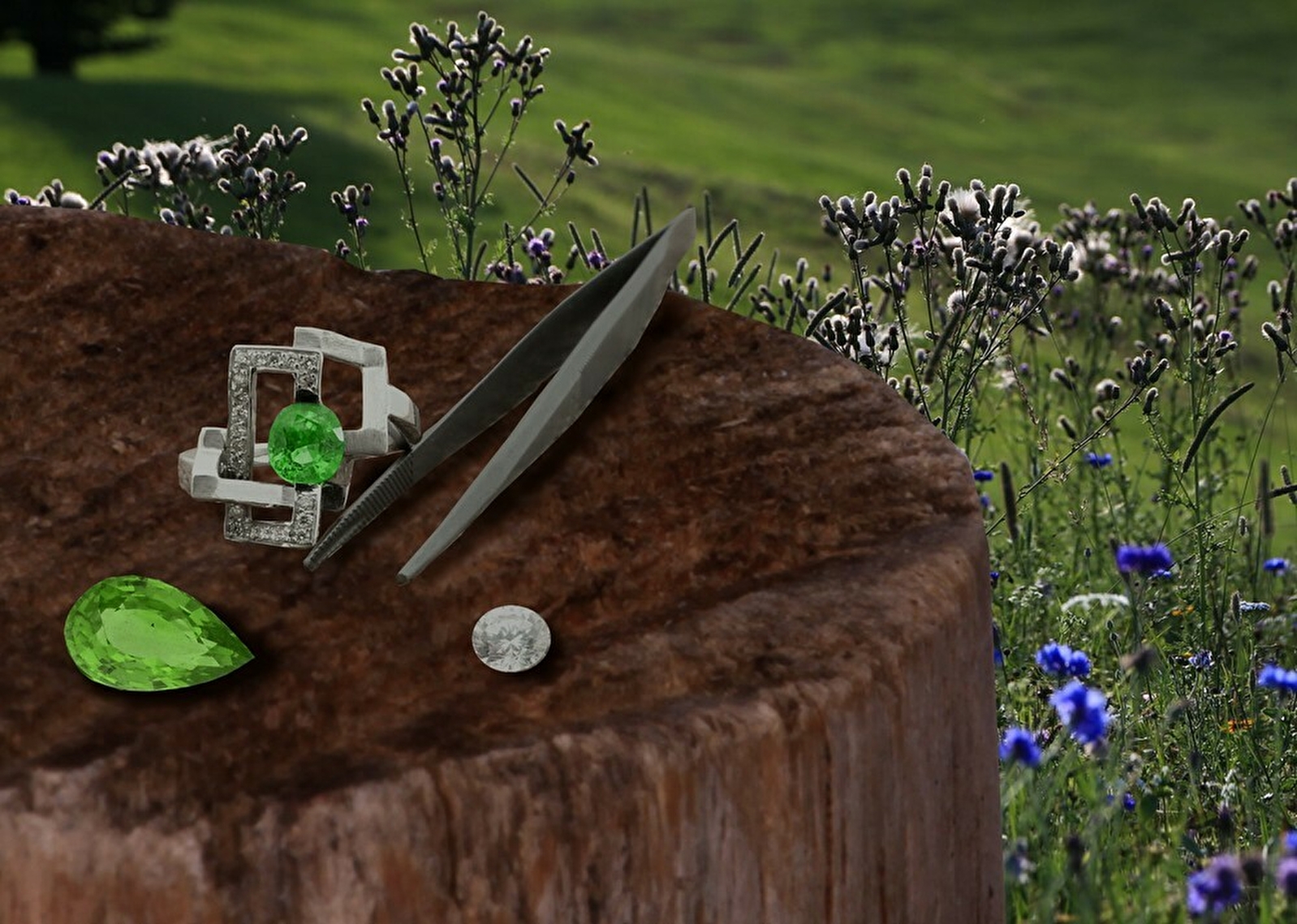 Valérie vous invite jusqu'au printemps 2025 à venir découvrir l'univers fascinant et intriguant du grenat vert. L'exposition présente la beauté captivante de cette pierre à travers trois de ses variétés les plus rares.