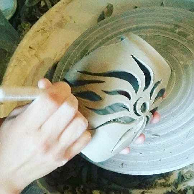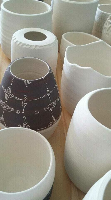 Cécile Colnot réalise des pièces en céramique, avec du grès et de la porcelaine. Elles sont façonnées entièrement à la main, elle les décore par la suite, pour enfin les cuire à 1280 C°.