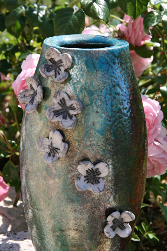 Développée au 16e siècle au « Pays du soleil levant » cette méthode exige que les pièces soient sorties du four alors qu'elles sont encore incandescentes ; elles sont ensuite immédiatement plongées dans de la sciures qui s'embrase... Le choc thermique fendille alors l'émail et la fumée s'infiltre directement dans les fissures, marbrant l'objet de fins traits noirs... et faisant ainsi de chaque pièce une œuvre unique.