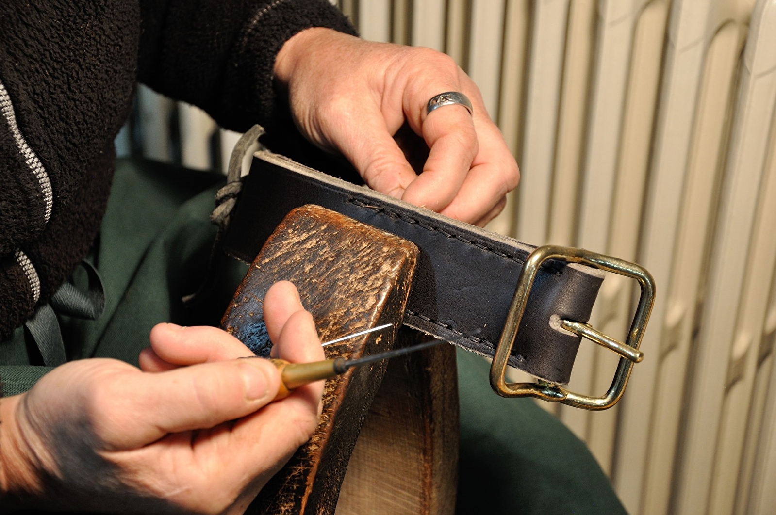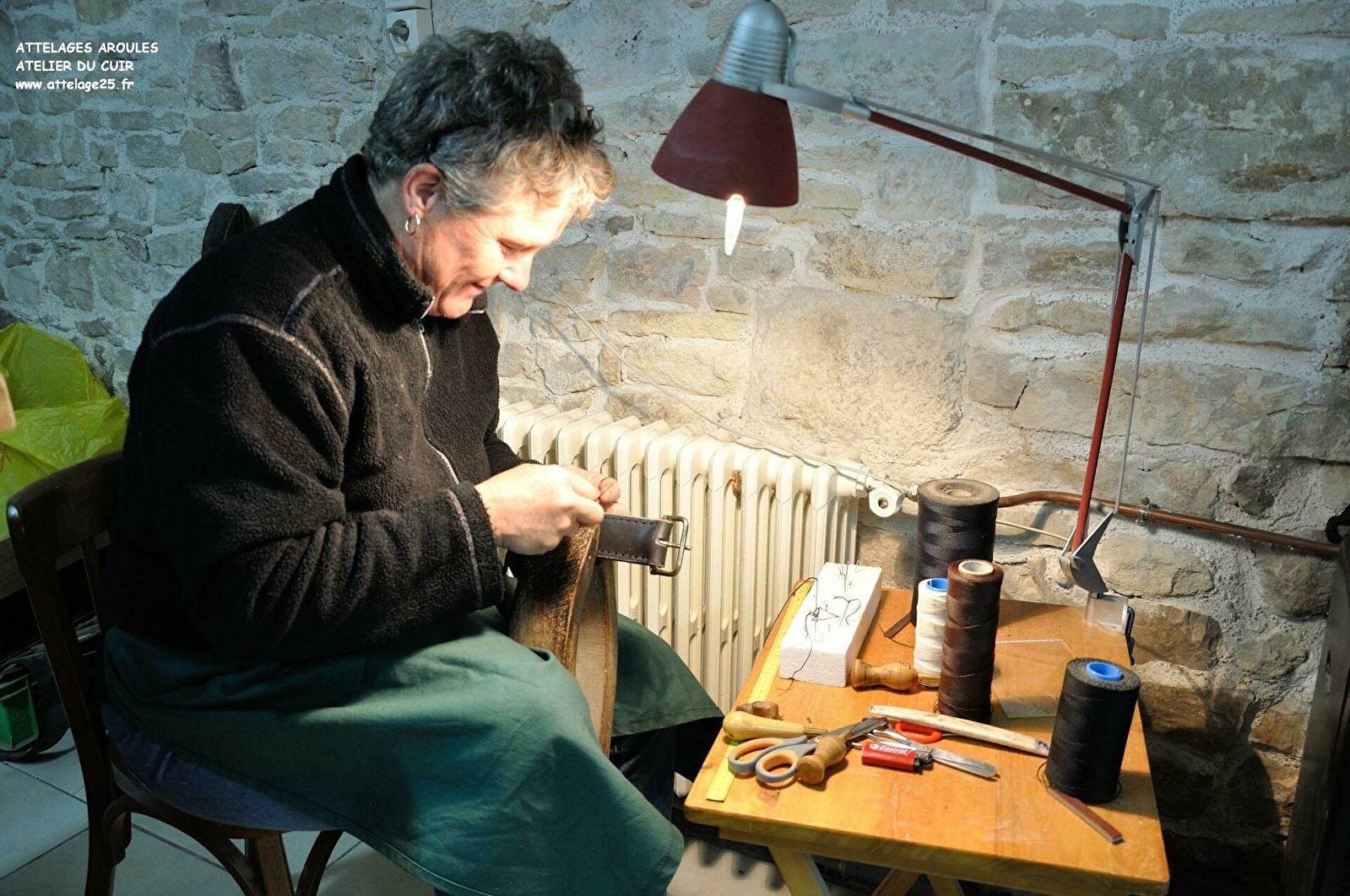 L’atelier du cuir vous fera découvrir les outils et techniques de fabrication des courroies des cloches de vaches, harnachements pour les chevaux, licols des animaux... et même des ceintures. Vous saurez tout de ce savoir faire ancestral : comment couper le cuir avec la demi-lune, comment utiliser une alène... Chaque couture est faite à la main, en utilisant la technique à deux aiguilles dite "point du sellier".