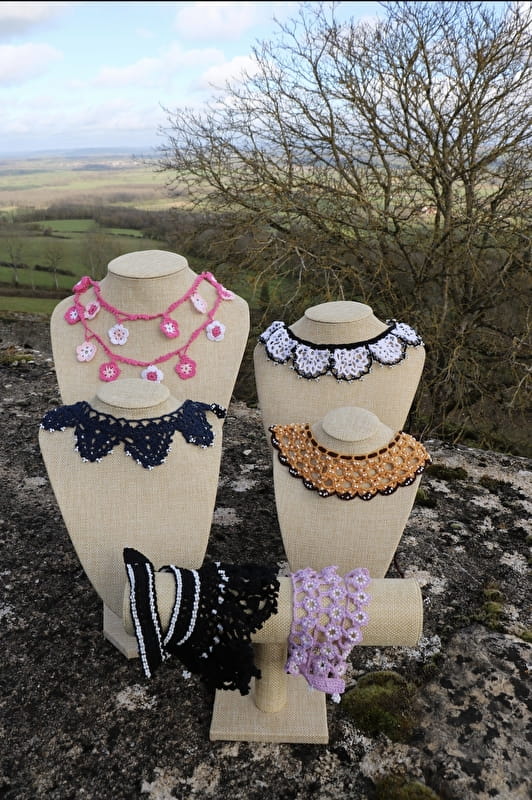 Je suis créatrice de bijoux textiles en dentelle de crochet.