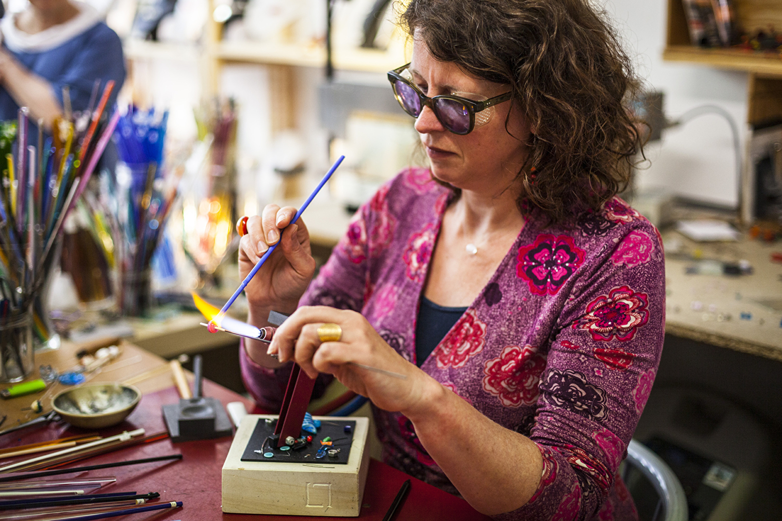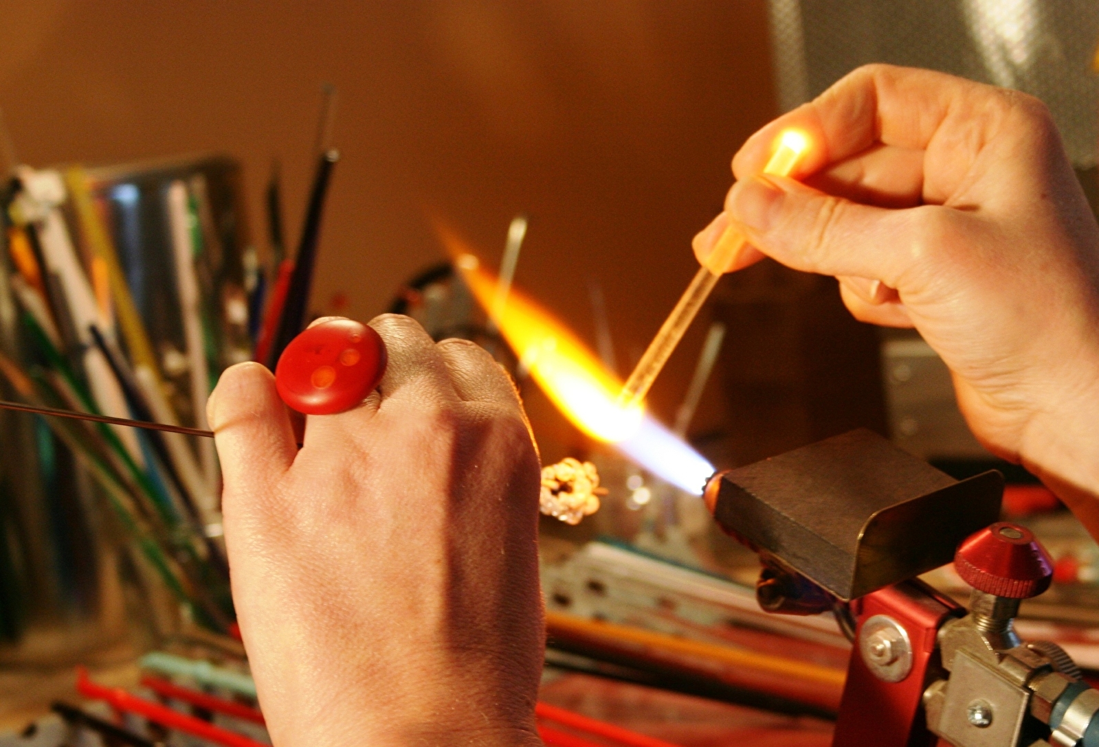 Création de bijoux et objets de décoration en verre de Murano filés au chalumeau : Boucles d'oreilles, Bagues, Colliers ainsi que des suspensions ou des tableaux poetiques