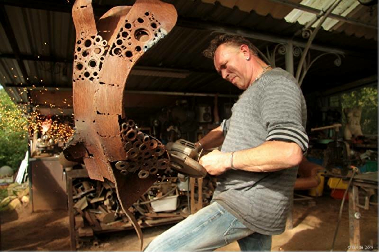 Outilleur de formation, puis artisan ferronnier et sculpteur depuis 2008, Christophe Mareschal travaille le métal et crée ainsi des corps de femmes, vases, fleurs...