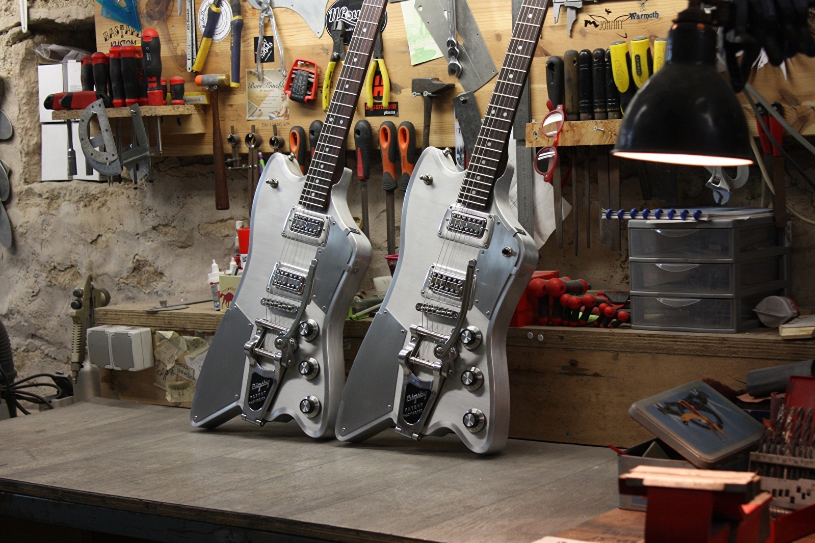 Ici, on fabrique des guitares et des basses en aluminium, haut de gamme, faites main. Qu'elles soient issues de l'imagination de l'atelier comme les ORIGINALS ou le fruit d'une collaboration avec un guitariste (CUSTOMIZED), les guitares MELODUENDE sont créées à la main et donc UNIQUES.