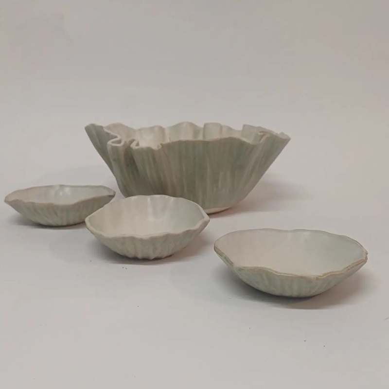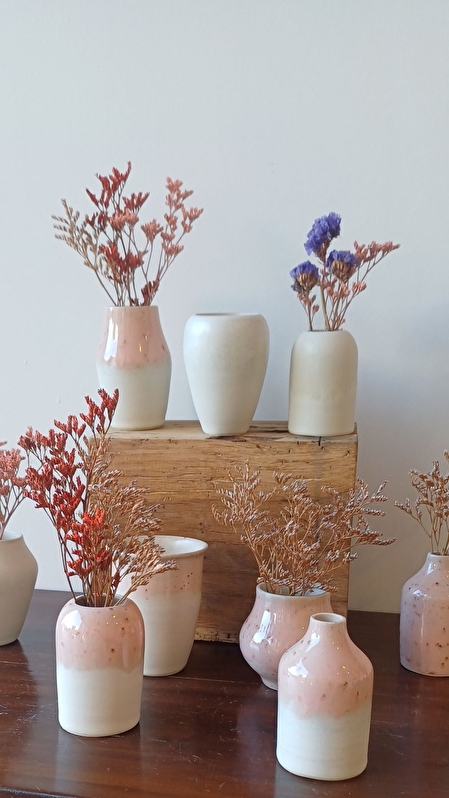 Notre production est constituée d’objets utilitaires: tasses, mugs, saladiers, coupelles, … et de décoration: vases, … dans un style que nous souhaitons simple, épuré et fonctionnel.