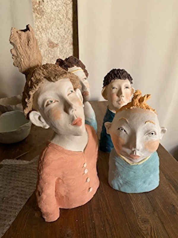 Mes sculptures sont réalisées en terre, travaillées dans la masse ou « à la plaque » et cuites directement à l’atelier.