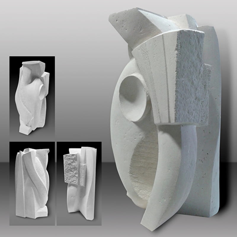 L’univers abstrait de mes peintures et sculptures trouve sa source dans l’observation de la nature ou de la matière. Les formes s’imposent, dialoguent avec la pierre ou jouent entre profondeur et transparences sur le papier, à l’aquarelle ou l’acrylique…