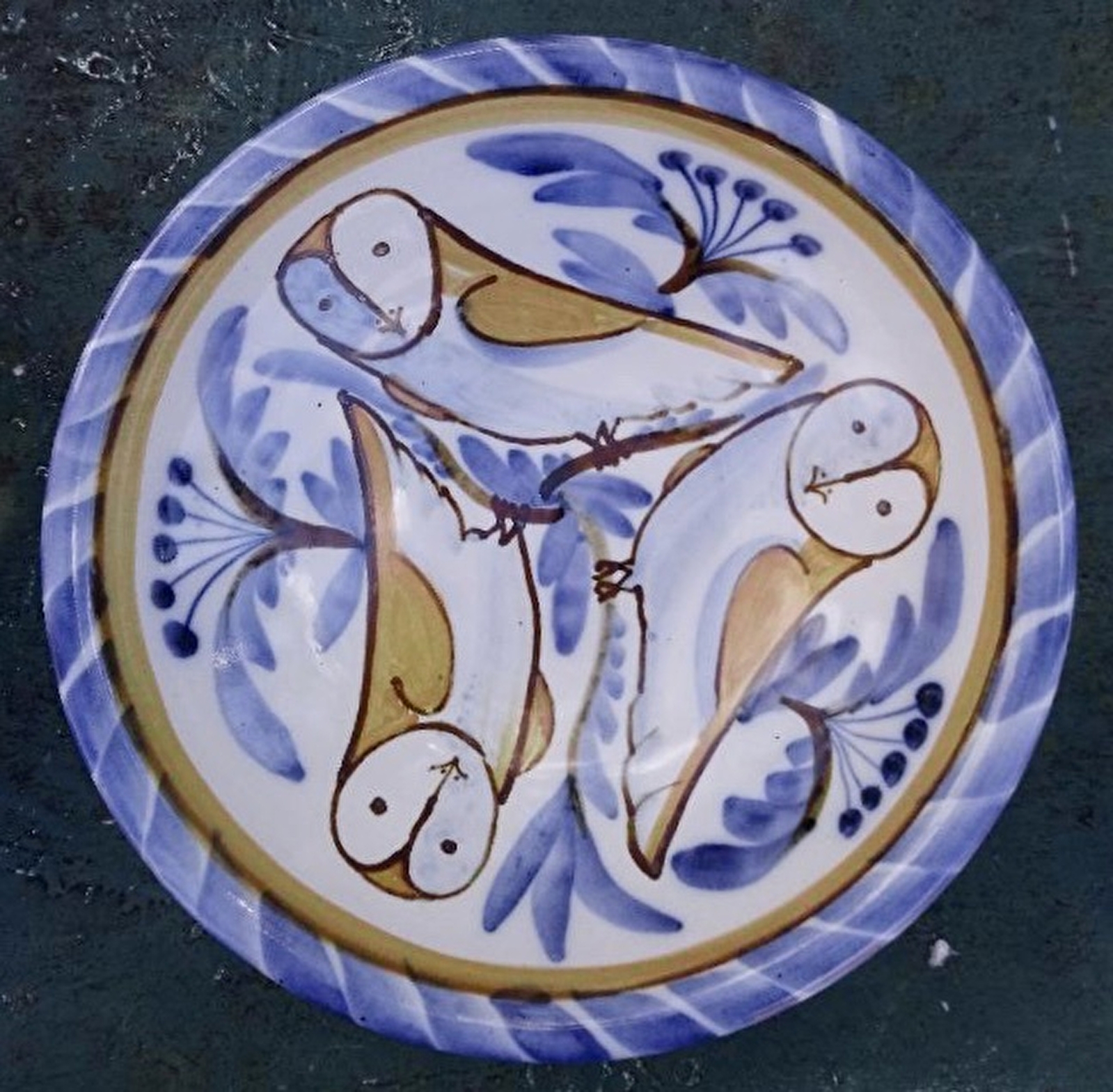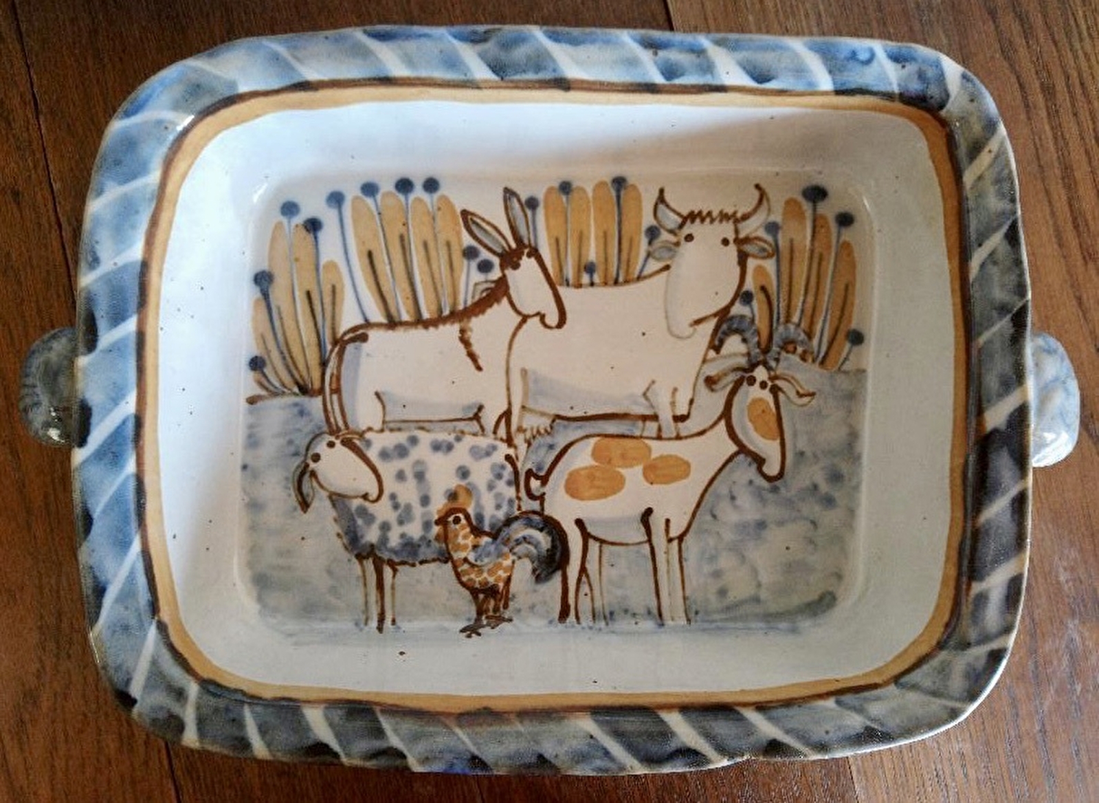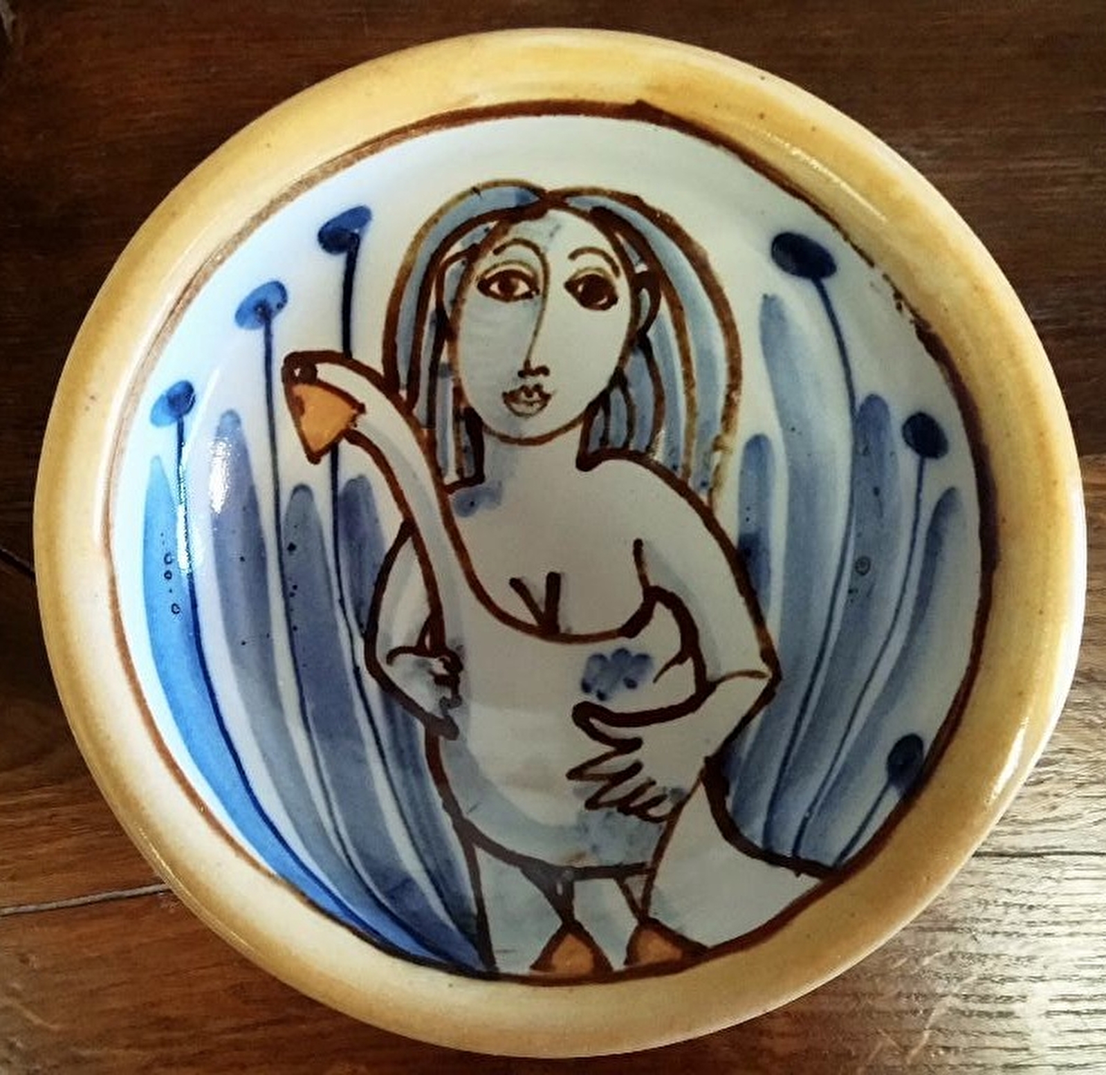 Poteries fait main, tourné en grés avec décor à main levée d'animaux et plantes.